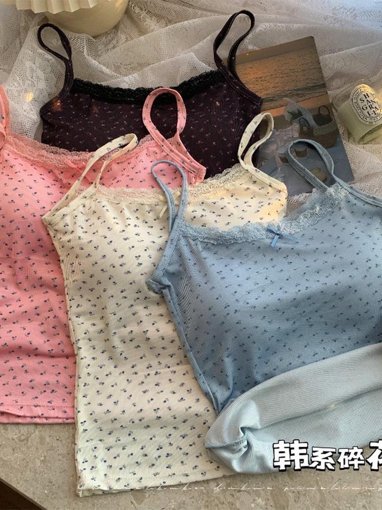 | nameOriginal | T Seaside Lace Hot Girl Floral Small Camisole Women's Belt Chest Pad Spring Wear French Dopamine Wearing Inner Wearing |