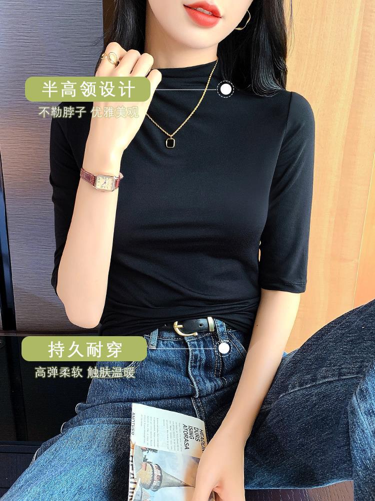 | nameOriginal | T semi-high collar black modal mid-sleeve T-shirt women's short sleeve 2024 new spring and summer bottoming thin upper |