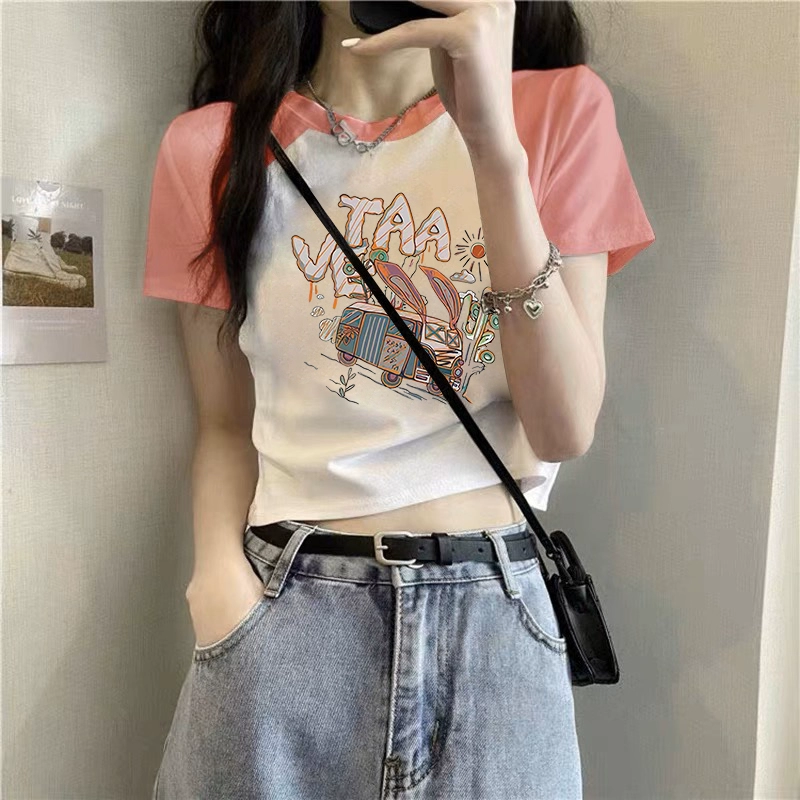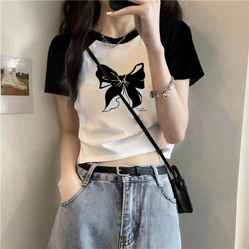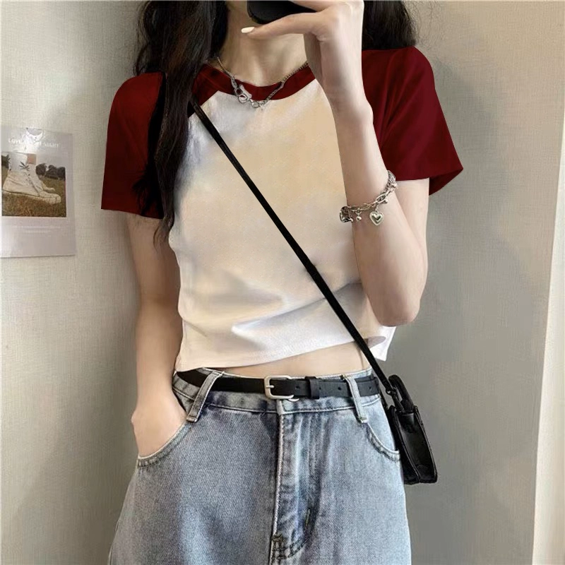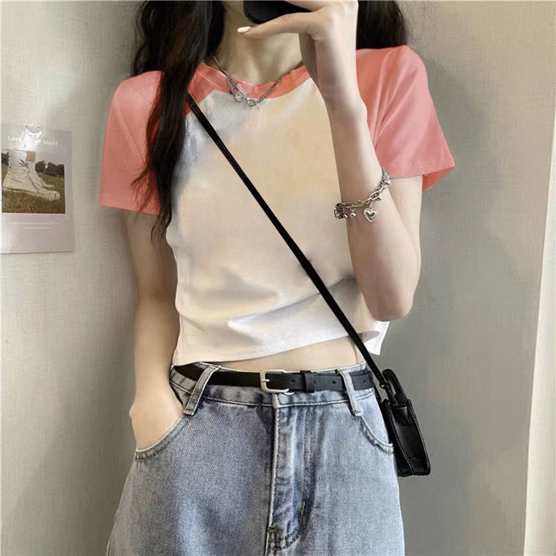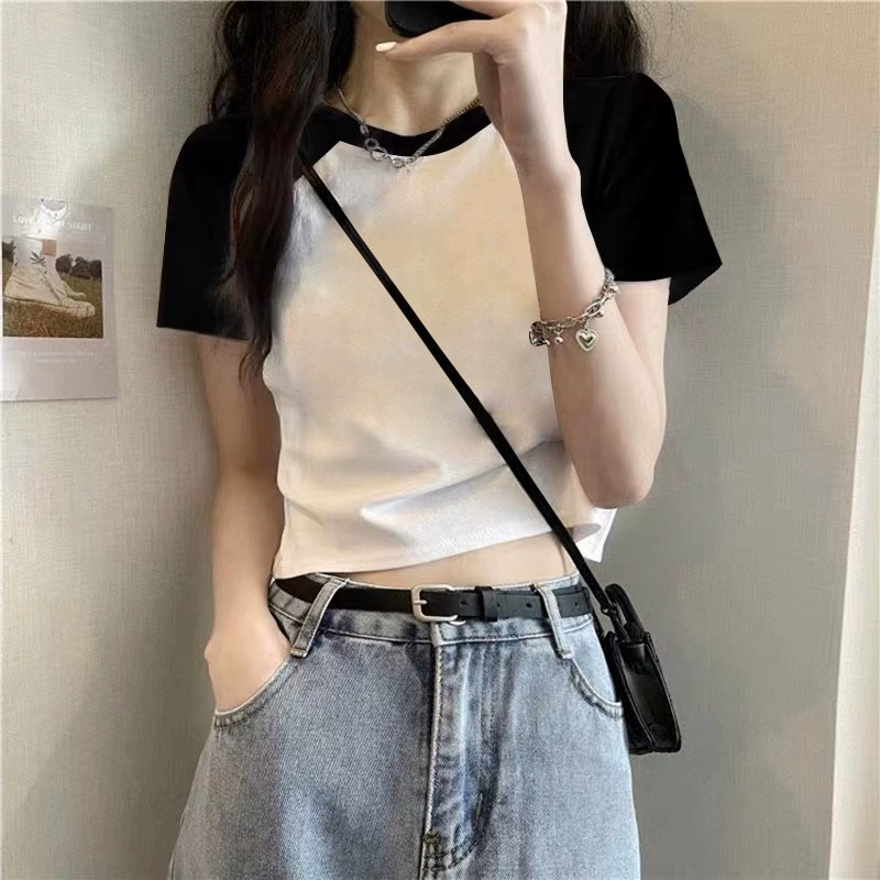 T-shirt 2023 new slim fit contrast top ins short sleeves