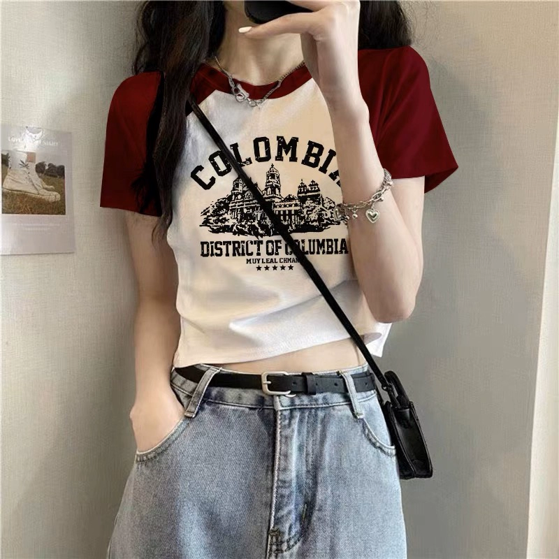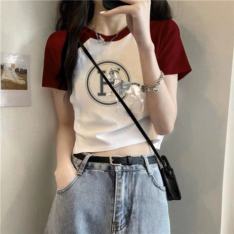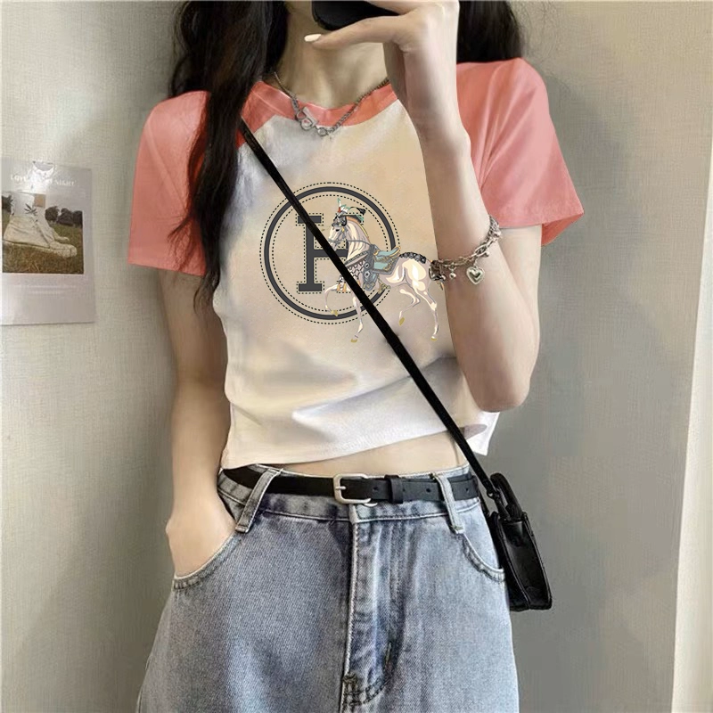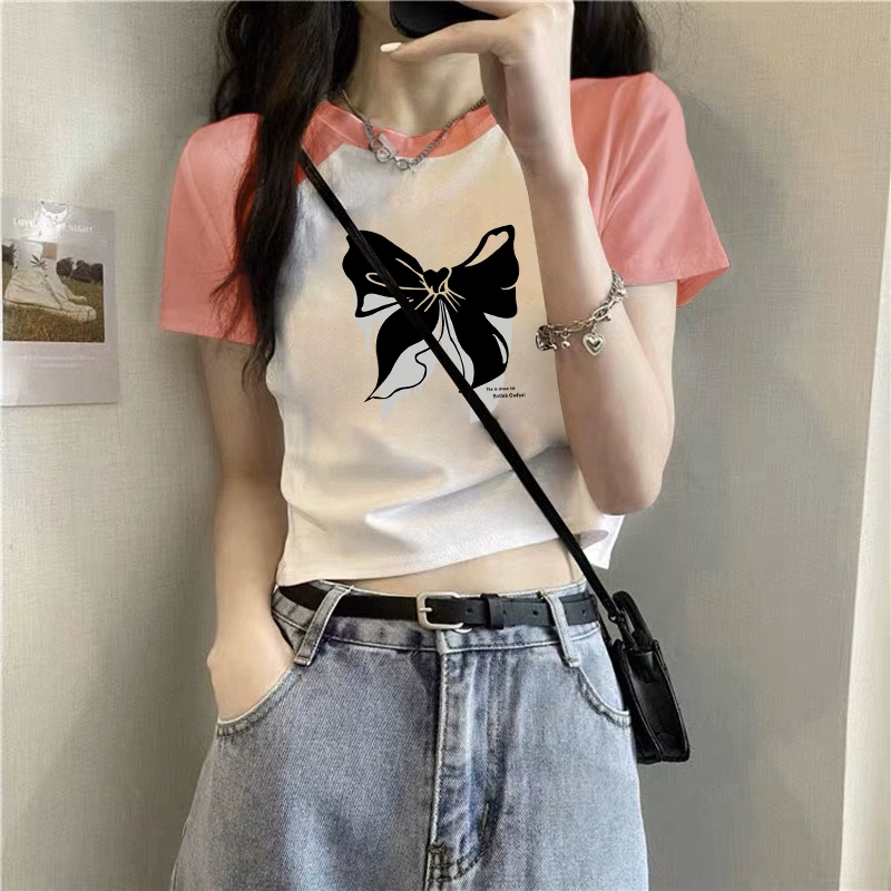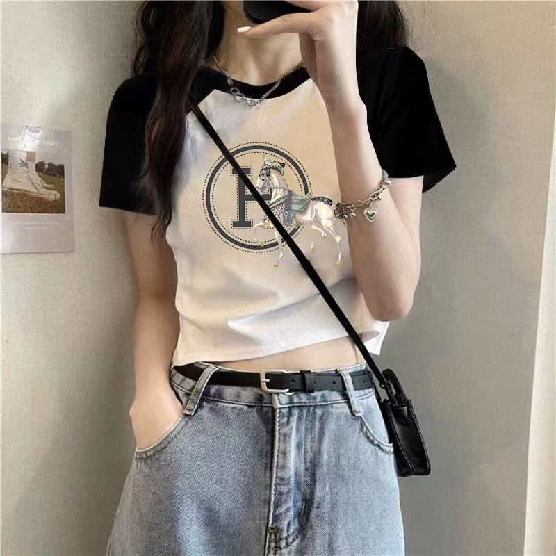 T-shirt 2023 new slim fit contrast top ins short sleeves