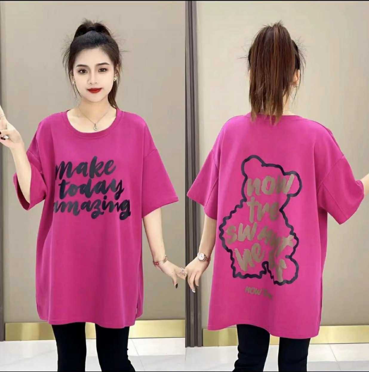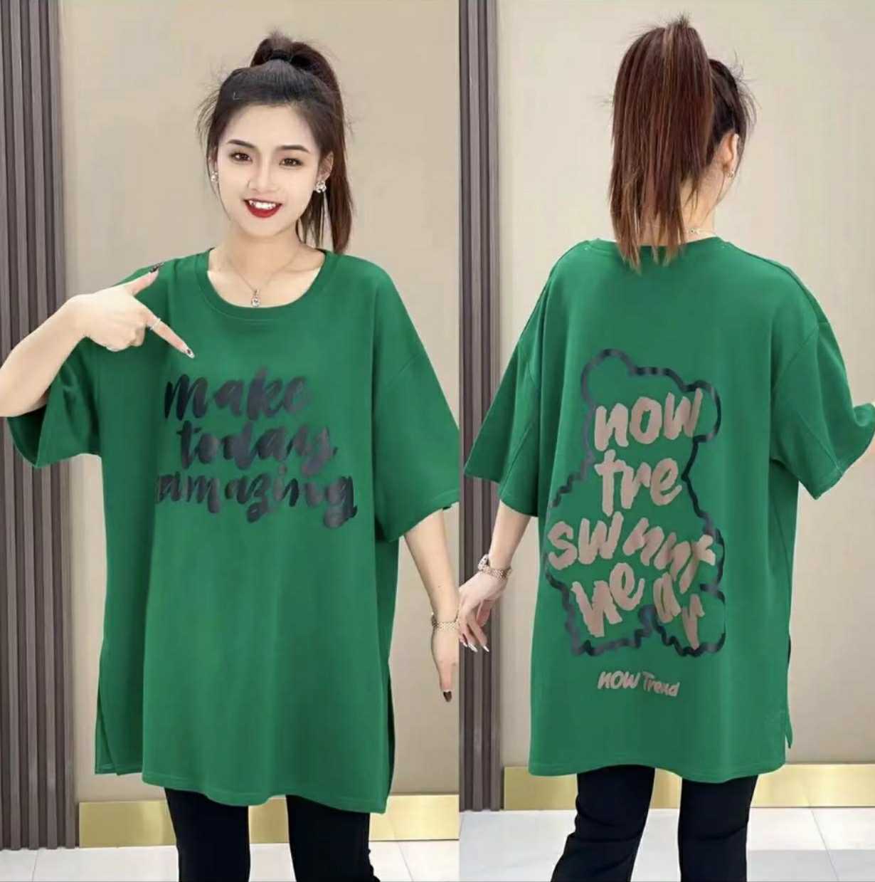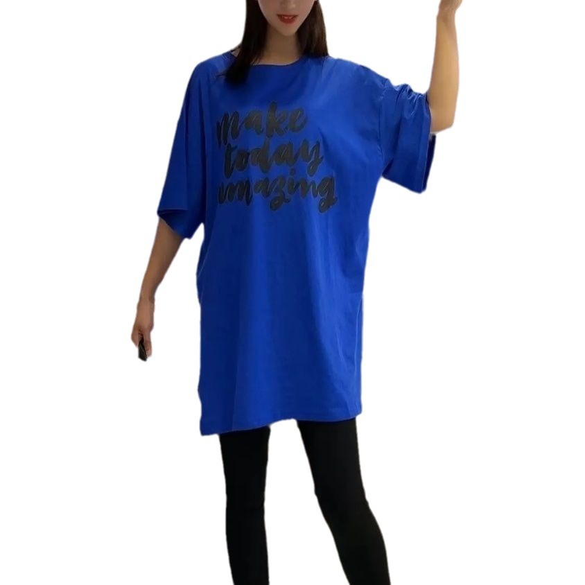 T-shirt 2024 new casual loose mid-length large board fat sister short sleeve cartoon letter printed round neck Women’s T