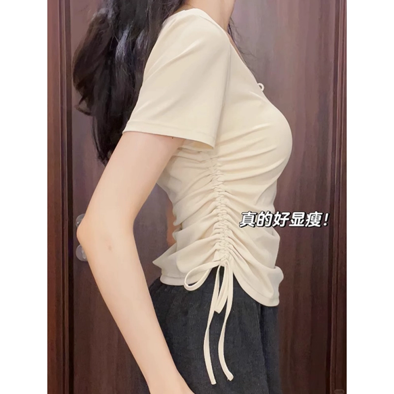 | nameOriginal | T-shirt design, right-shoulder waist, slim-fitting short-sleeved top |