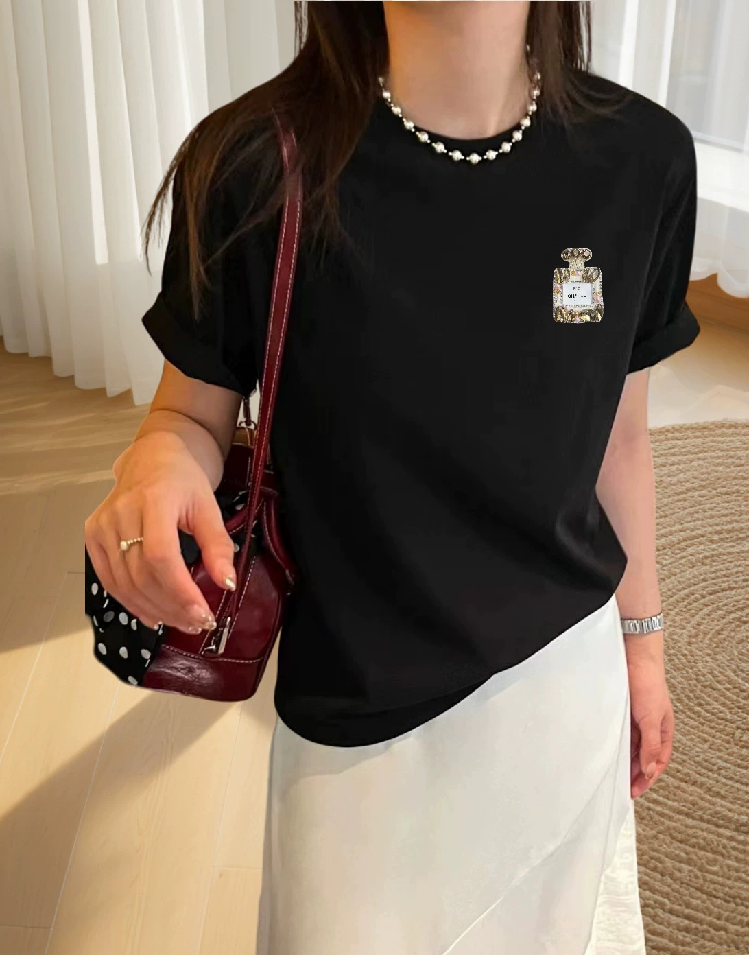 | nameOriginal | T-shirt design with fashionable silky cotton short sleeves and beading |