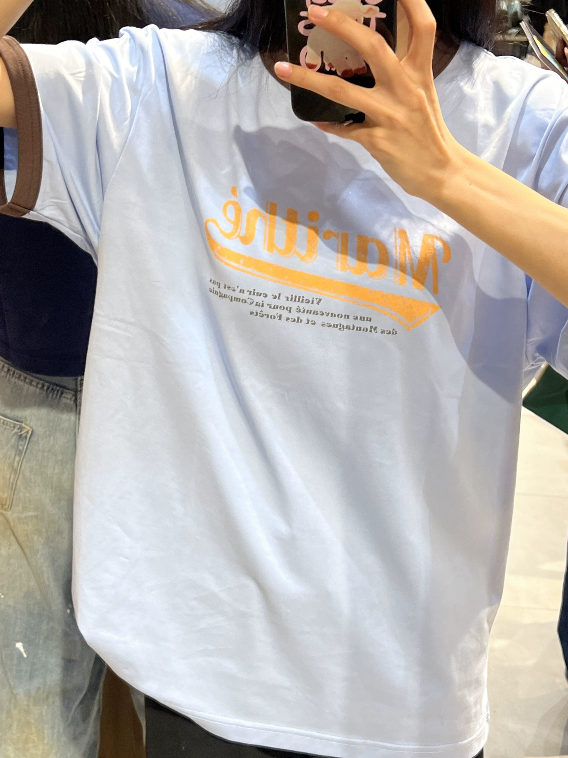 T -shirt high Yunzhen retro letter round neck comfortable short sleeves