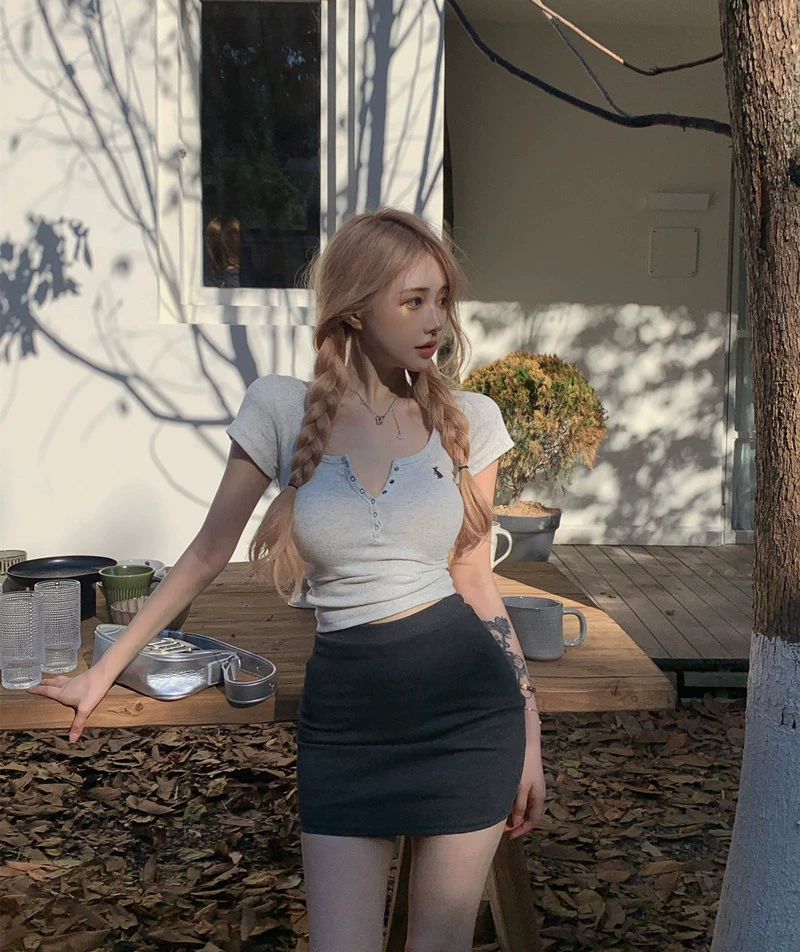 | nameOriginal | T-shirt half open collar short sleeve spring hot girl slim embroidery |