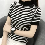 T-shirt ice silk pullover half turtleneck striped top short sleeves