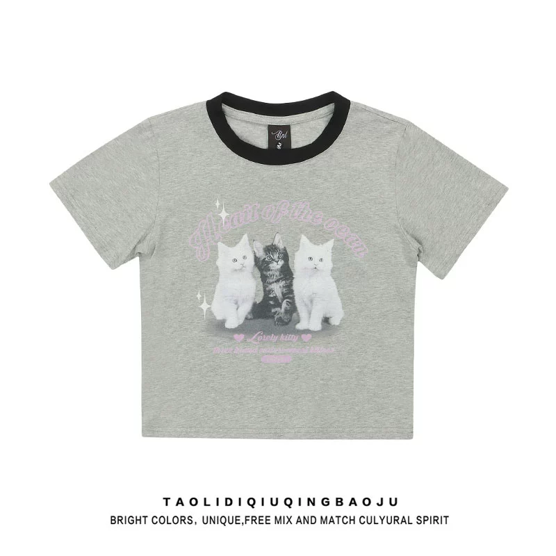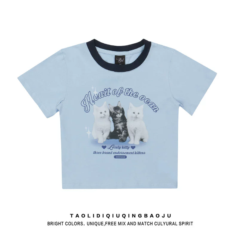 T-shirt Japanese short-sleeved slim top animal print