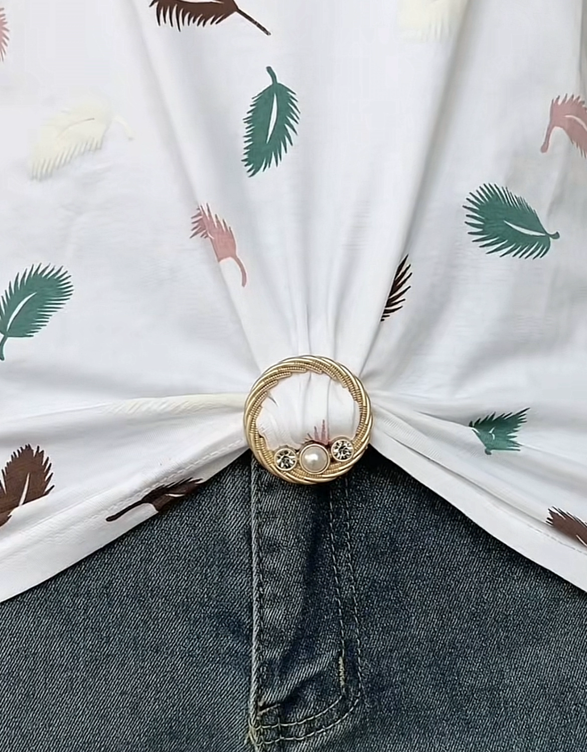 T -shirt knotting fashion silk towel fixed buckle ring