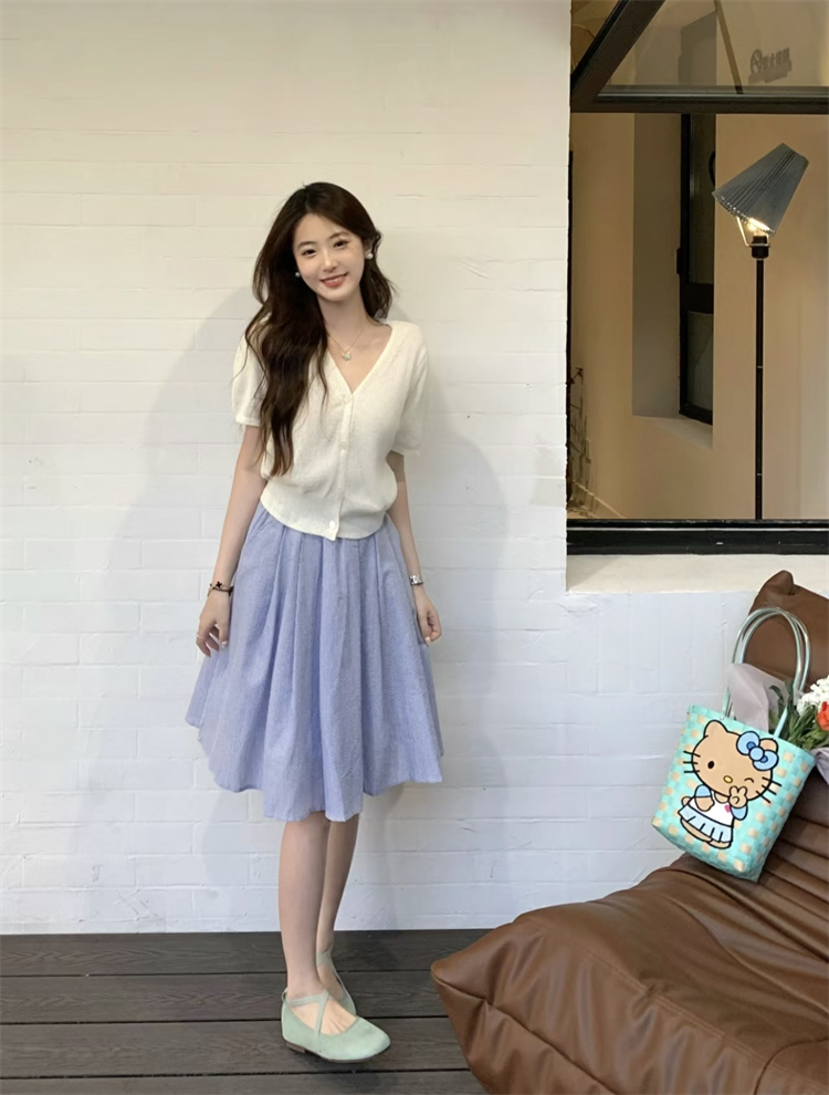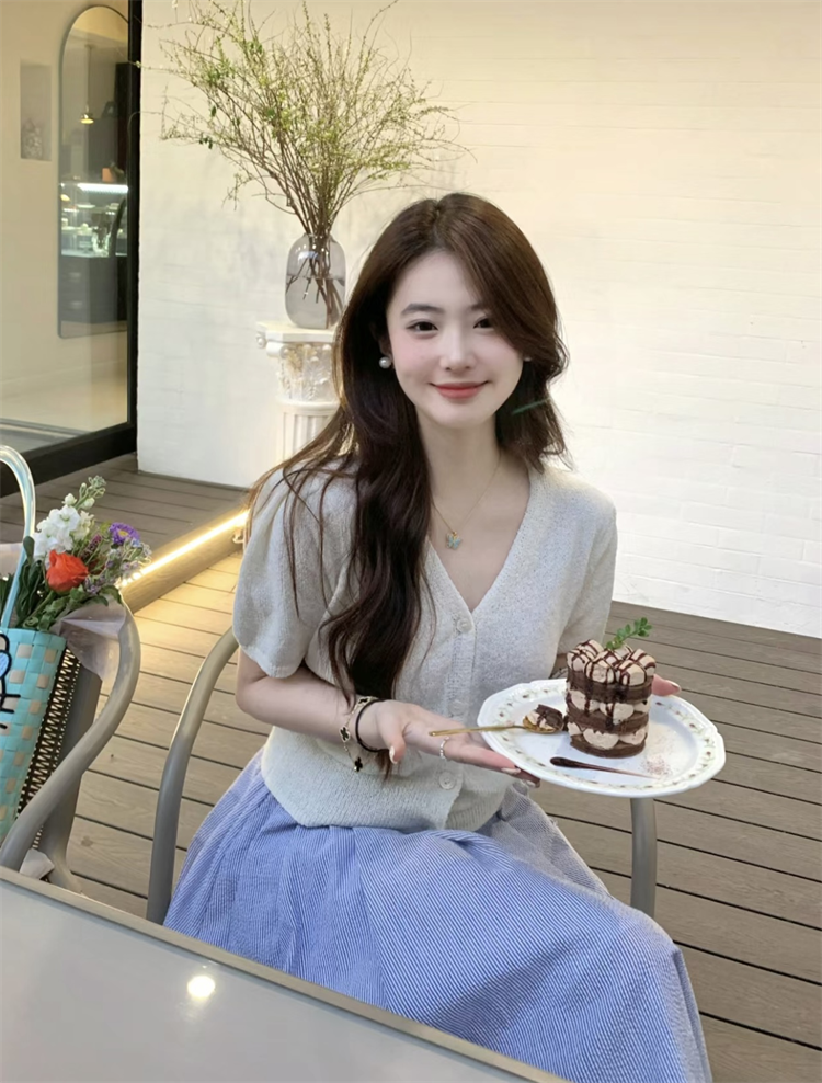 | nameOriginal | T-shirt kumikumi gentle style V-neck knitted short sleeves |