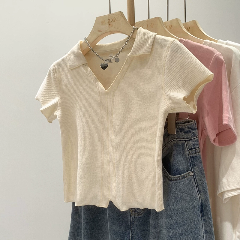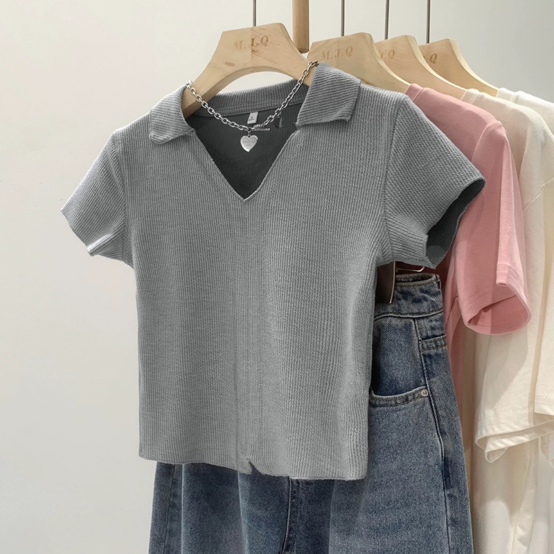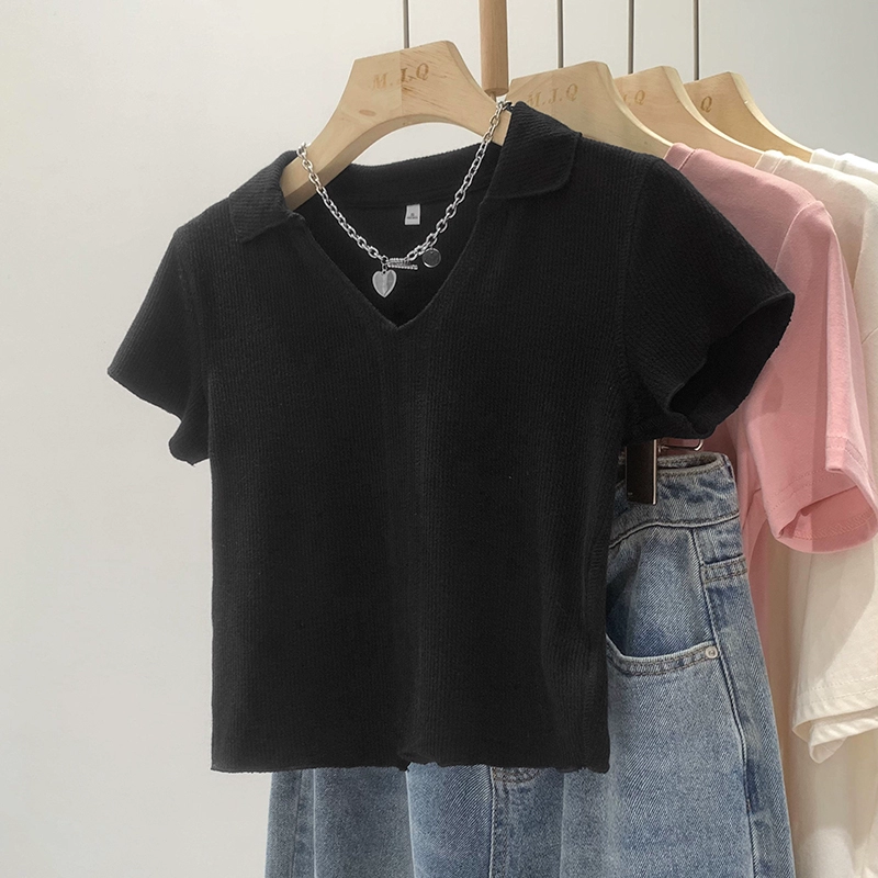 | nameOriginal | T-shirt right shoulder summer slim V-neck top knitted short sleeves |