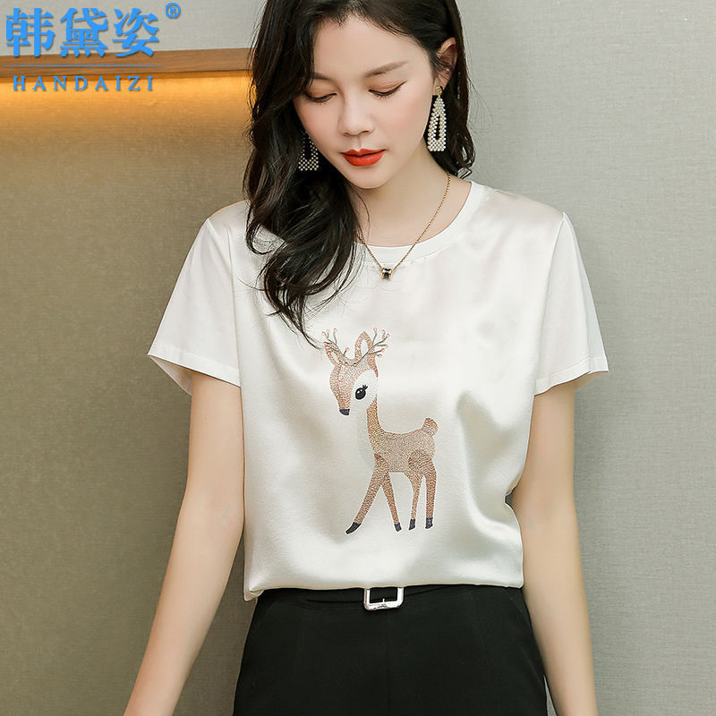 | nameOriginal | T-shirt short sleeve women's round neck 2023 new summer silk screen printed flower stitching AB top European station tide in |