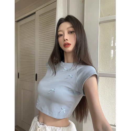 | nameOriginal | T-shirt summer slim waistcoat top with pink bow |