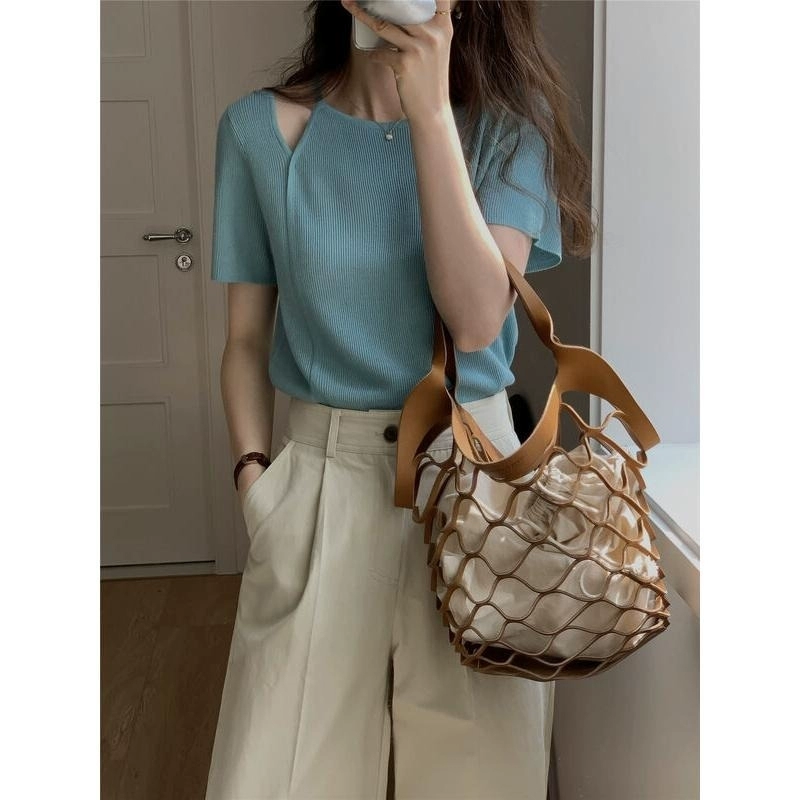 T -shirt top lady temperament light luxury exposed shoulder sweater