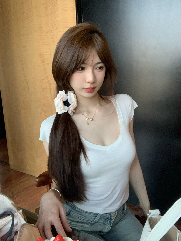 | nameOriginal | T-shirt white v-neck summer slim see-through top short sleeves |