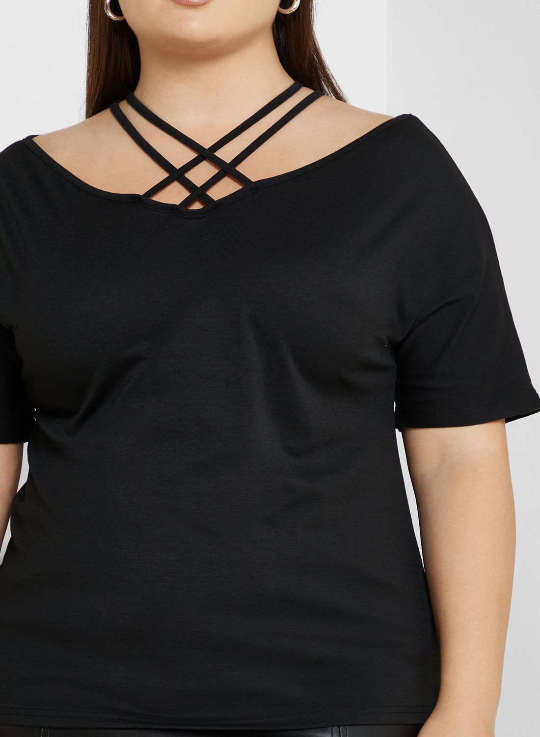 | nameOriginal | Crisscross Neck Detail T-Shirt |
