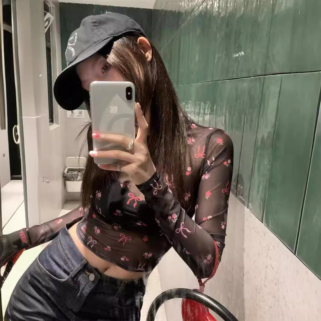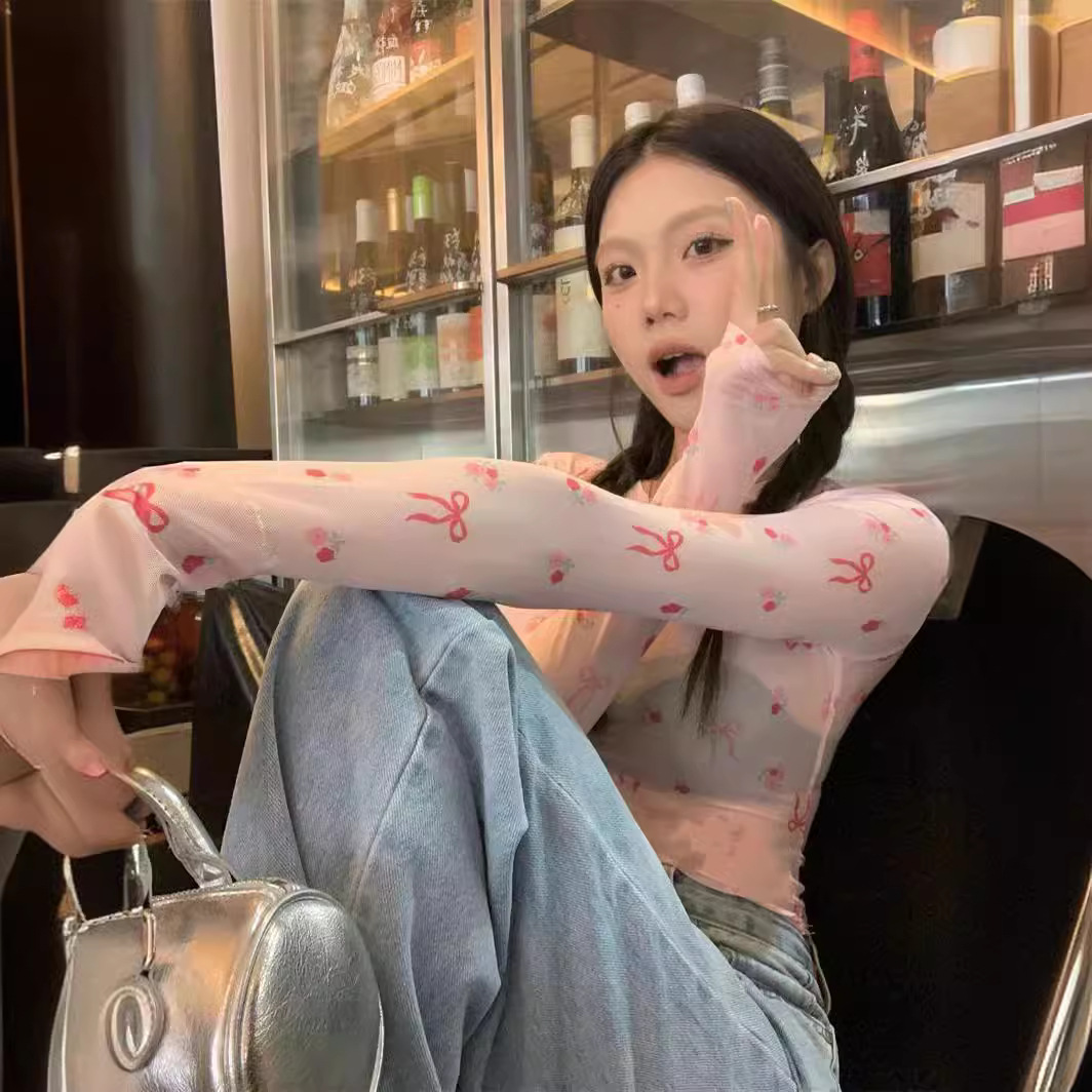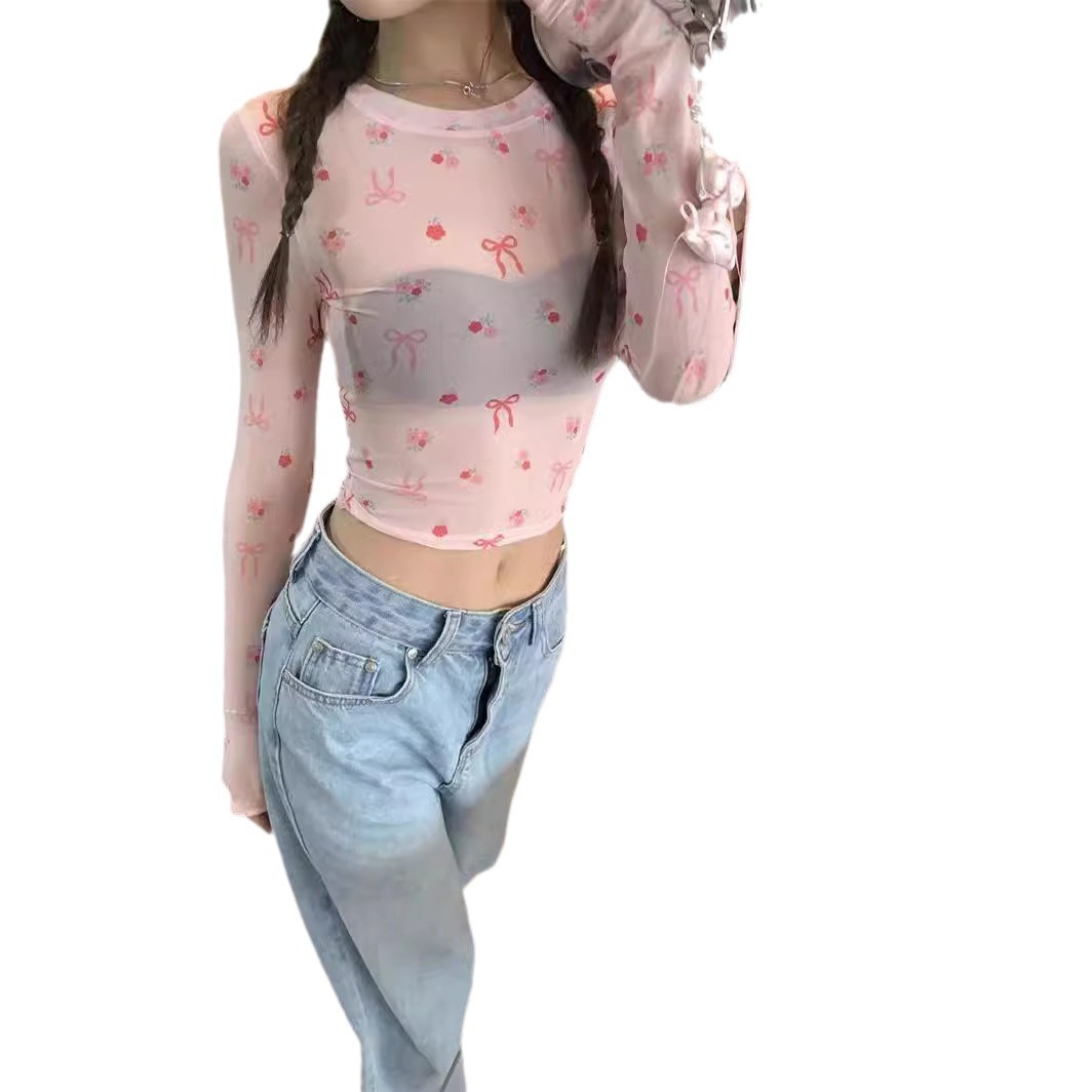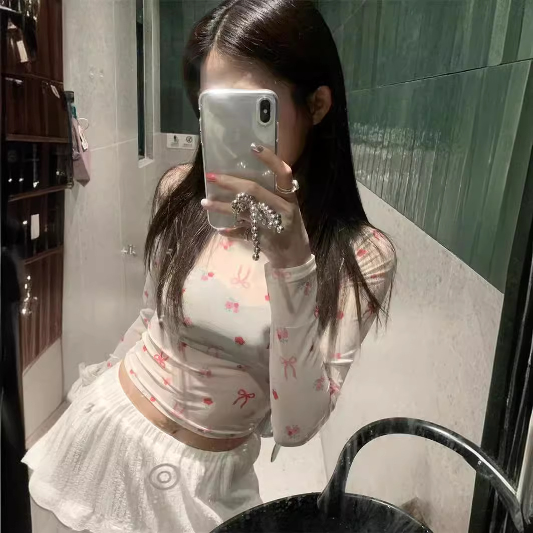 | nameOriginal | T-shirt Women's Korean-style Sweet and Spicy Style Distinctive Butterfly Printed Design Crewneck Long-sleeved Sunscreen Niche New Short Top |