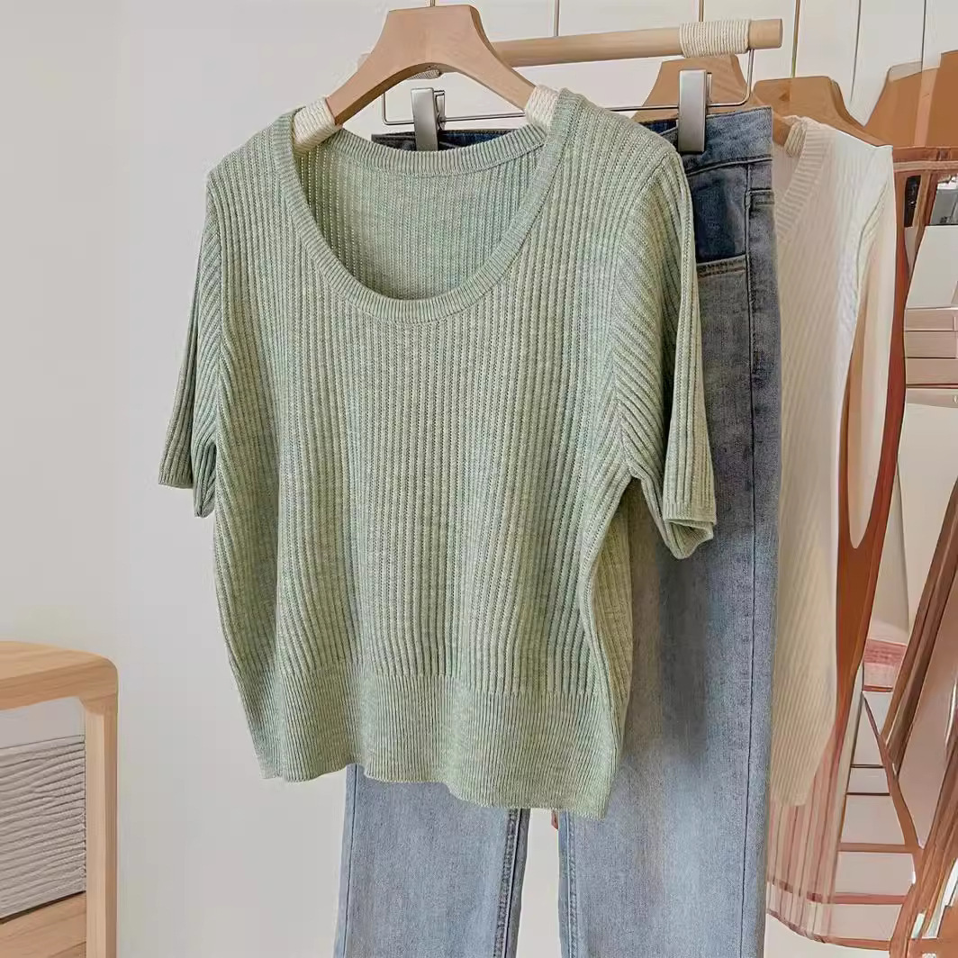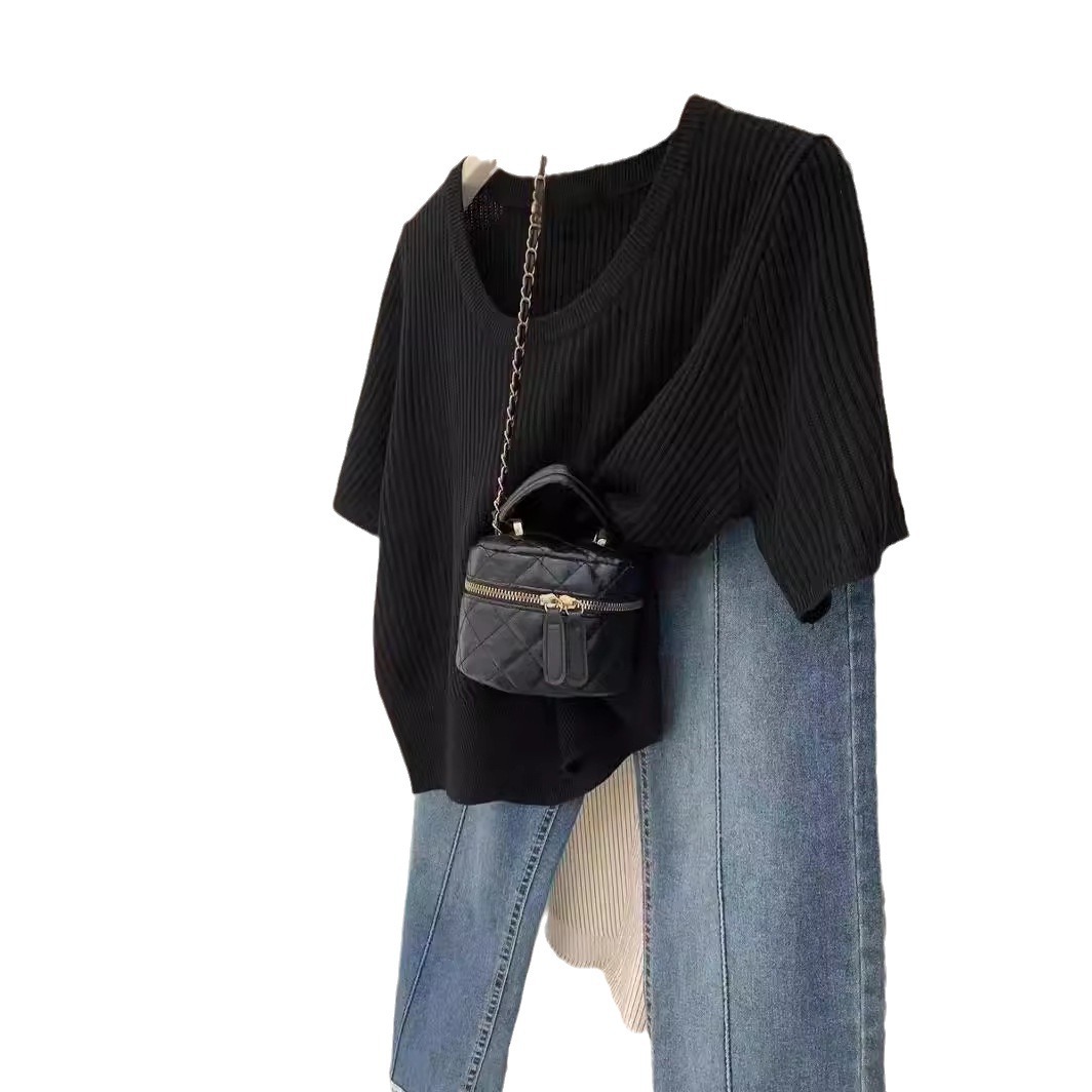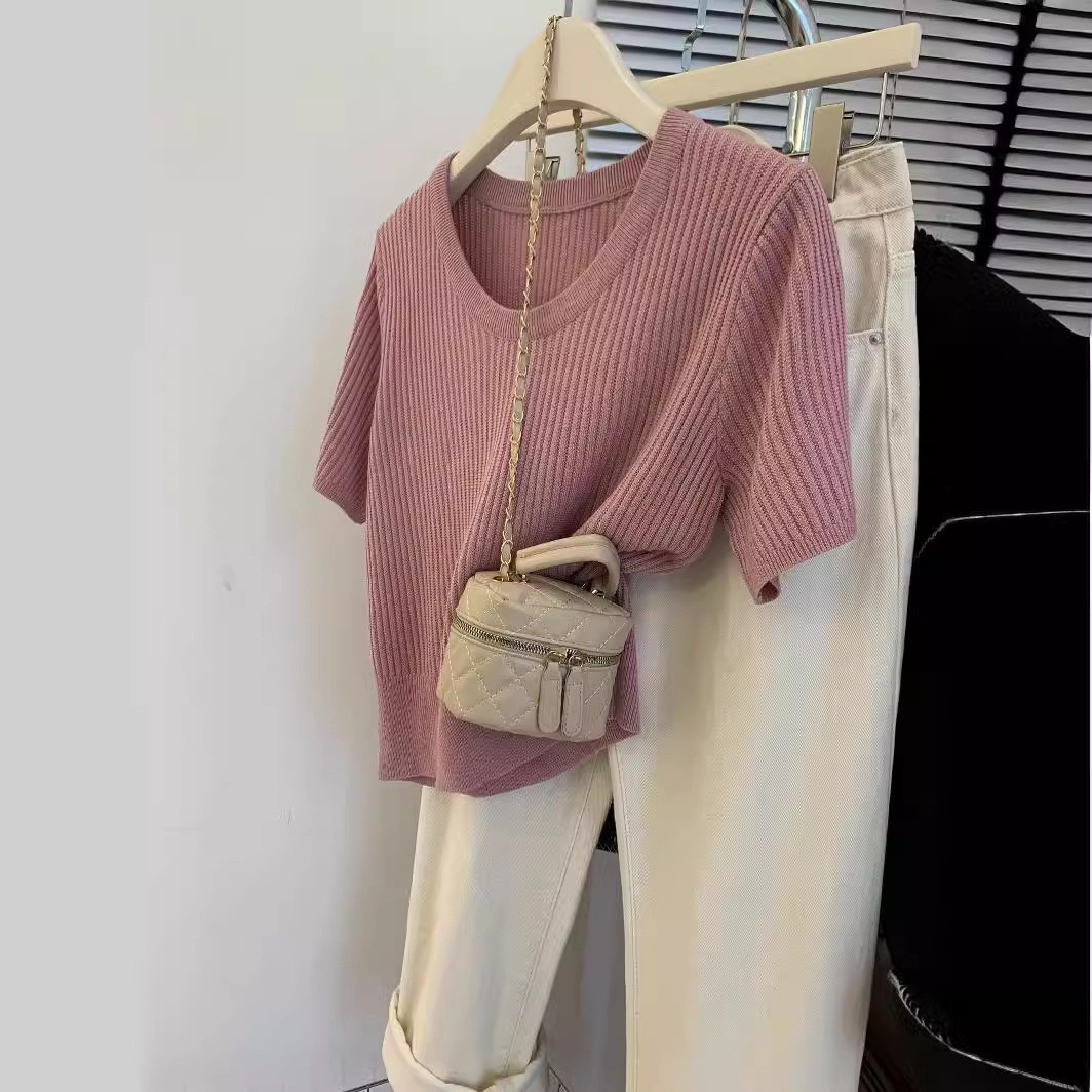 | nameOriginal | T-Shirt Women's Round Neck Knitted Thin 2024 Summer New Design Sense Niche Knitted Shirt Short-sleeved Top |