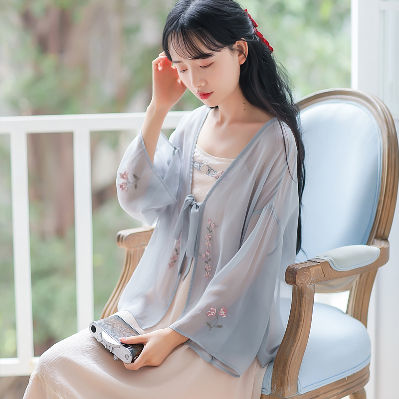 T Song-made Hanfu Top Women’s Long-sleeved Summer Thin Immortal Embroidered Sunscreen Clothing Super Immortal Outside Chiffon Shawl