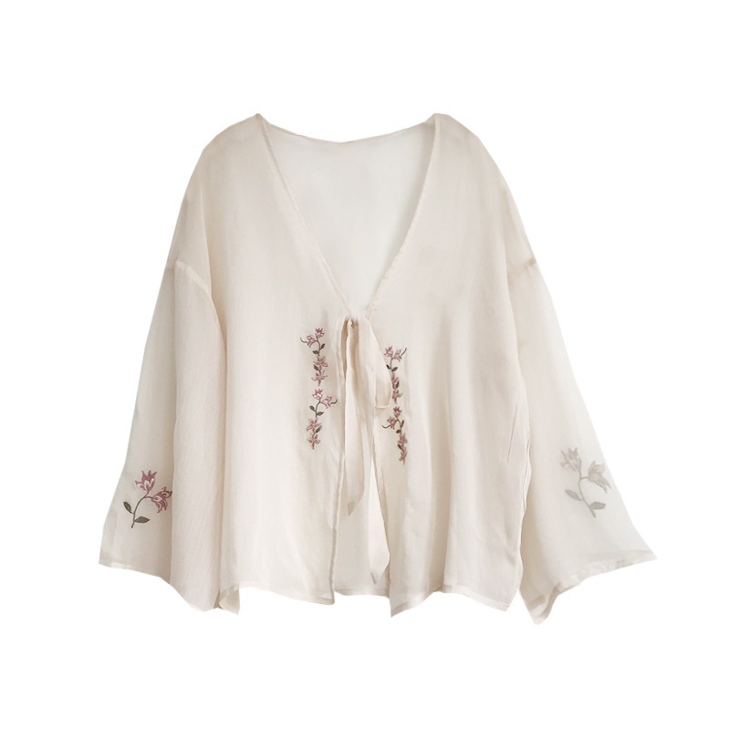 T Song-made Hanfu Top Women's Long-sleeved Summer Thin Immortal Embroidered Sunscreen Clothing Super Immortal Outside Chiffon Shawl