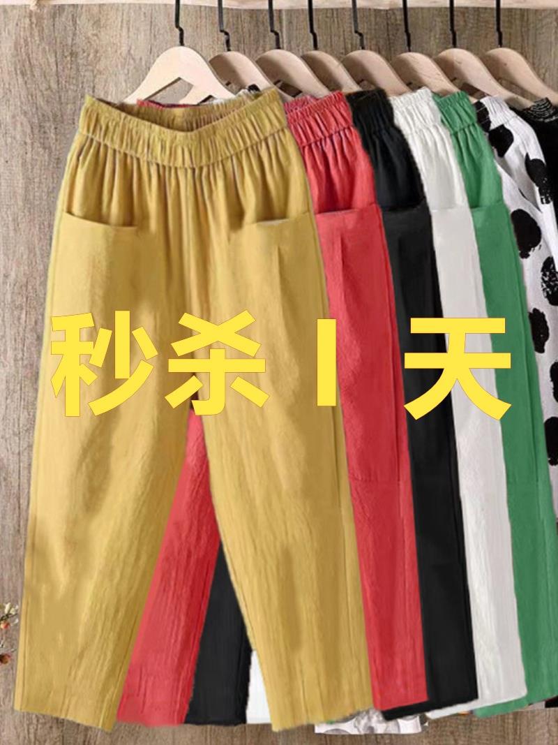 T Special Price Cotton and Linen Harlan Pants Women's Summer Thin Mother Pants 2024 New plus size Women's Pants Nine-point Casual Radish