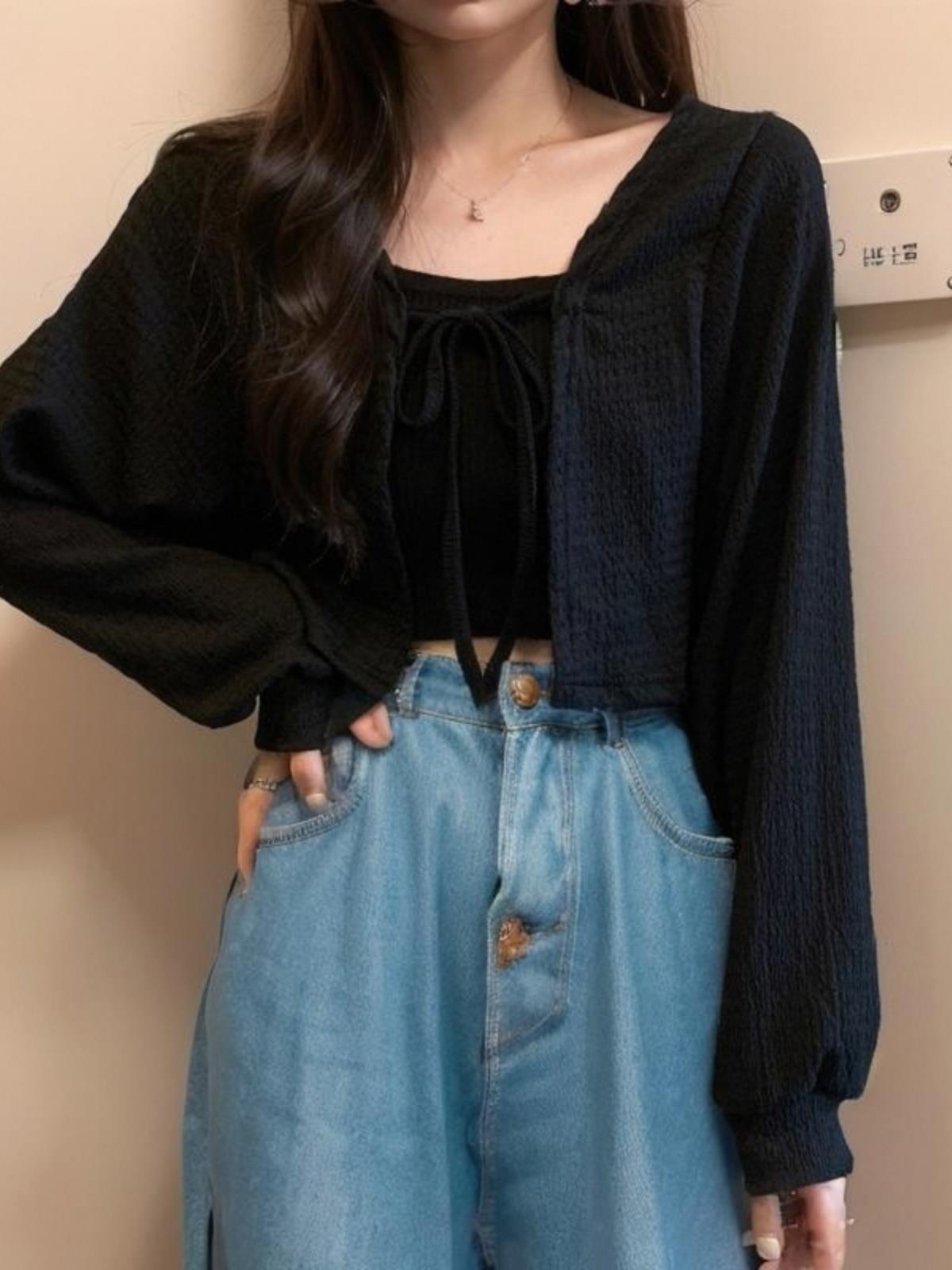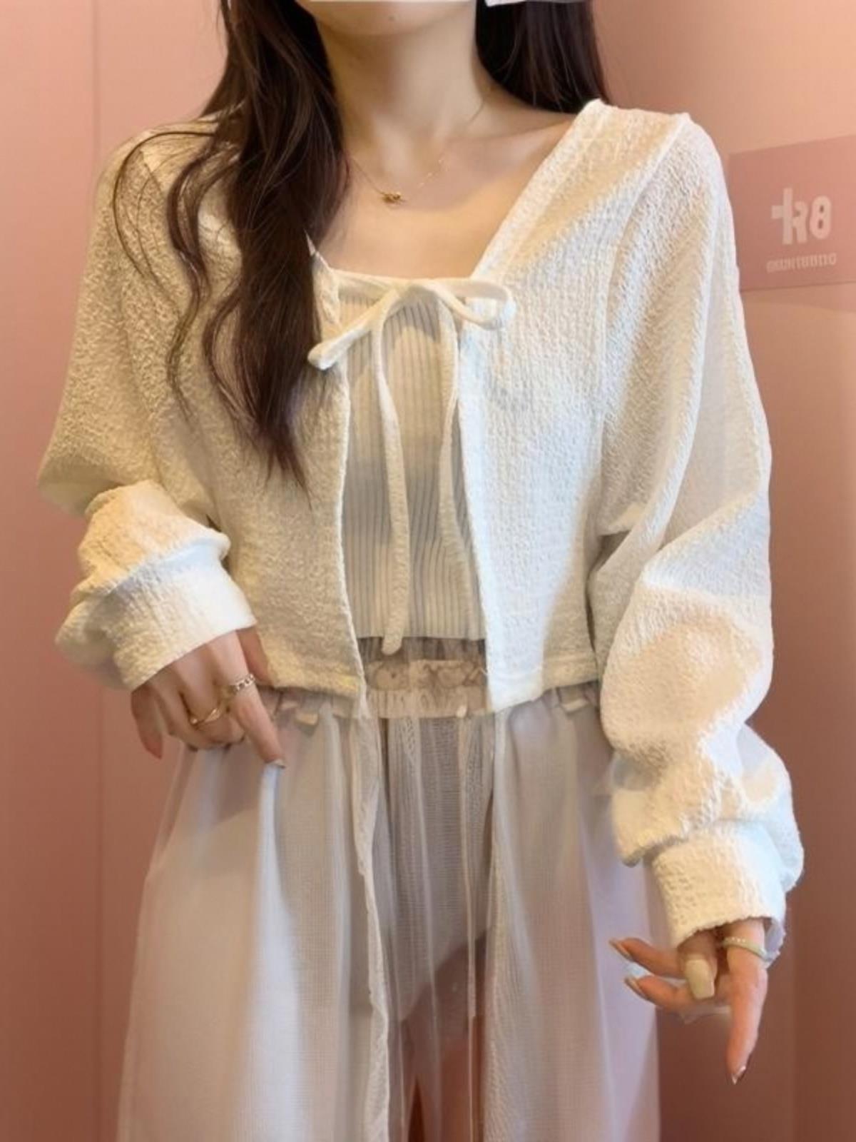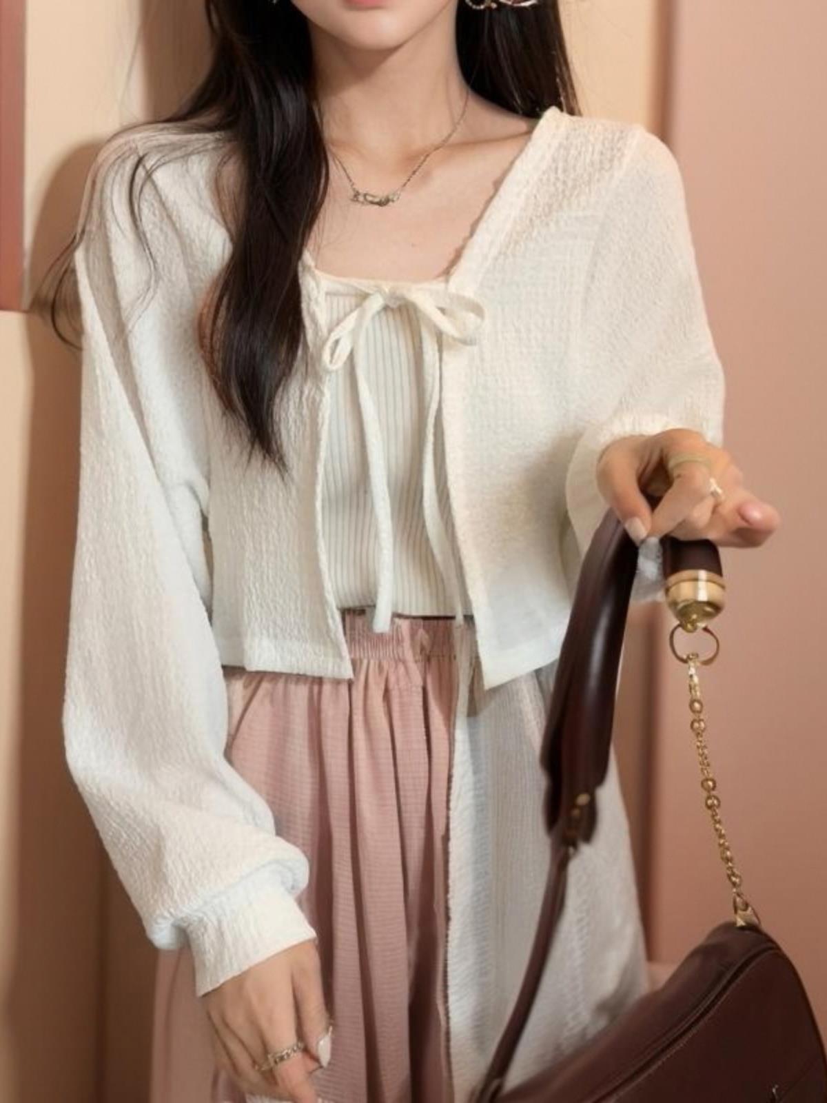 T Summer Thin Ice Silk Small Waistcoat Women's Short Top with Shawl Sunscreen Cardigan with Sling