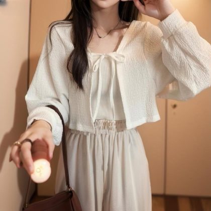 T Summer Thin Ice Silk Small Waistcoat Women’s Short Top with Shawl Sunscreen Cardigan with Sling