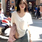 T White V-neck Shoulder Short-sleeved T-shirt Women’s Summer 2024 New Loose Solid Color Base Shirt Inner Spice Top