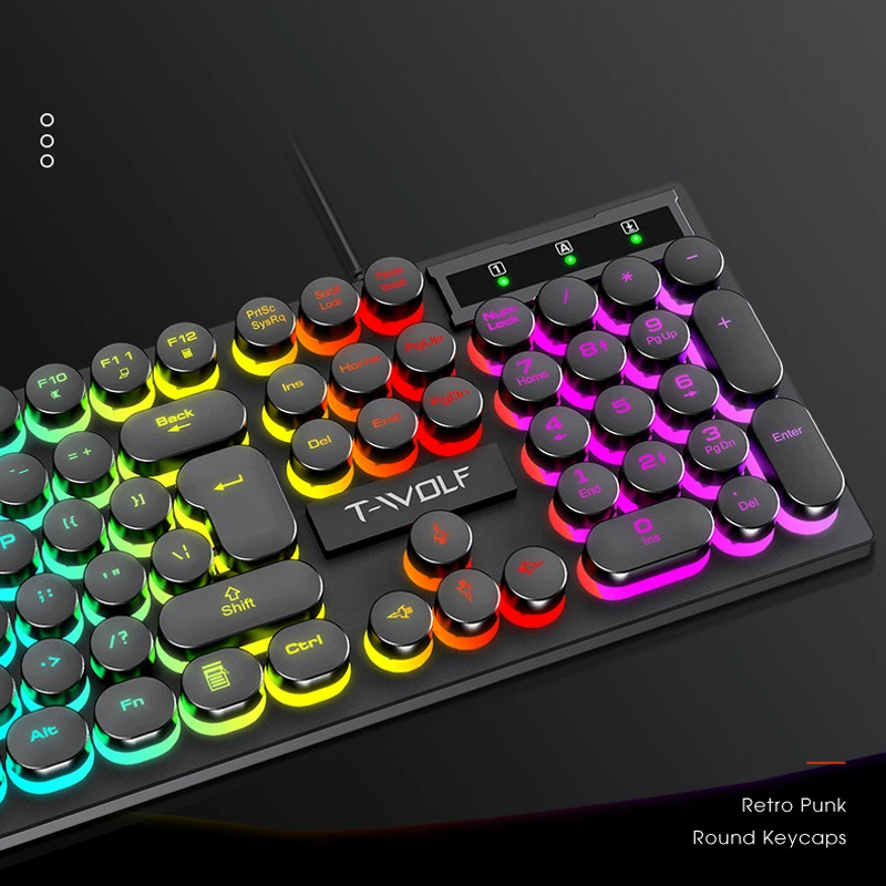 | nameOriginal | T-WOLF Thunderwolf T80 gaming keyboard wired luminous laptop male pink punk retro keyboard AL |