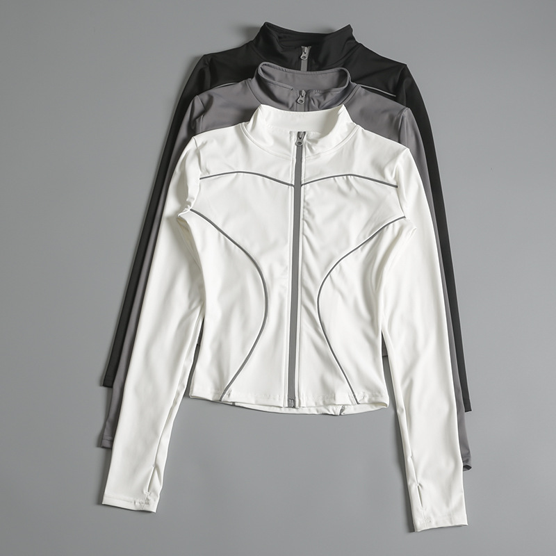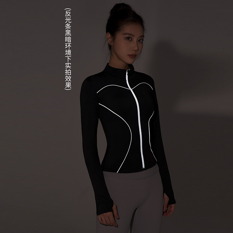 T Yoga Clothes Jacket Women's Tight-Fit Vertical Collar Zipper Reflective Night Run Riding Quick-drying Sports Top Long-sleeved Fitness Clothes