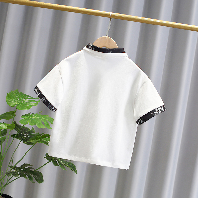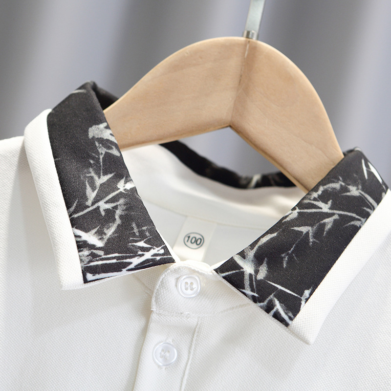 | nameOriginal | T149 Summer 2024 Korean Turtleneck Shirt New Printed Landscape Bamboo Leaf Polo Shirt Trendy Boys' Top |