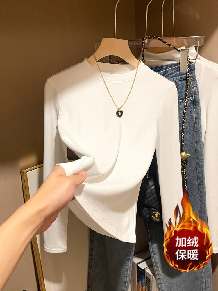 | nameOriginal | T2024 Early Spring fleece-lined Thickened Semi-high Collar Base Shirt Women's T-shirt Long-sleeved Slim-fit Slimming All-match Inner Top |