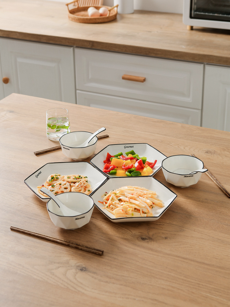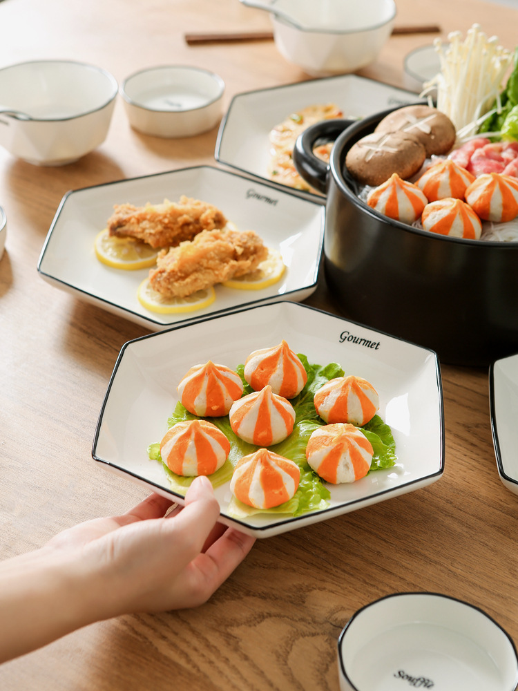 | nameOriginal | T9J5 wholesale ceramic hexagonal platter tableware combination suit household plate dish hot pot New Year family reunion |