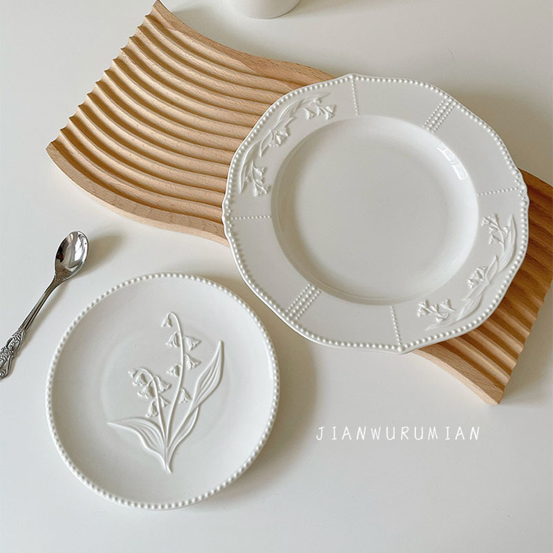 | nameOriginal | T9J5 wholesale mid-ancient relief Lily ceramic plate high temperature porcelain dessert cake plate flat plate dish breakfast |