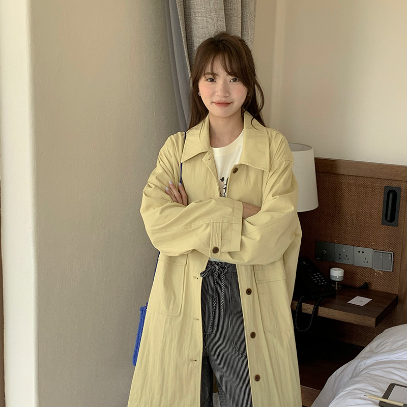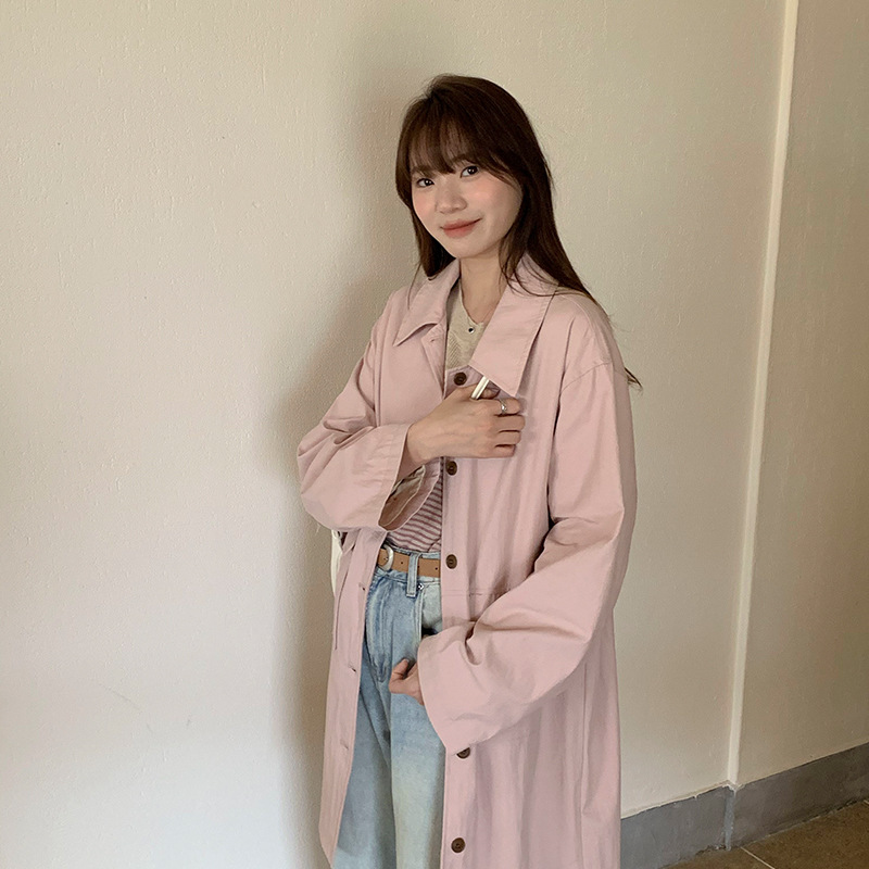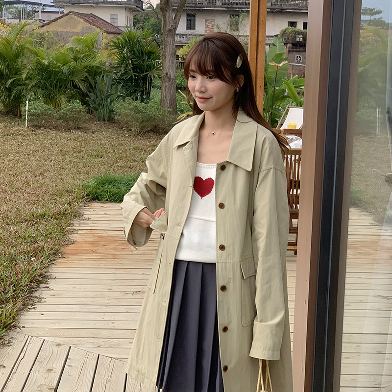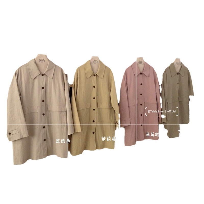 table blue elegant Korean style 2024 spring simple mid-length trench coat gentle fashion slim fit all-match trench coat