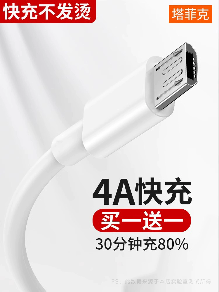 | nameOriginal | Tafik Android data cable high-speed usb universal charger cable fast charging flash charging suitable for Xiaomi oppo Huawei Samsung vivo mobile phone single head extension 2 meters power bank genuine short 4A |