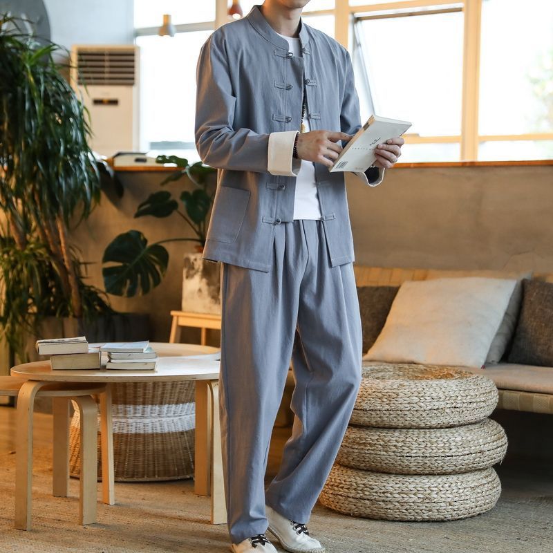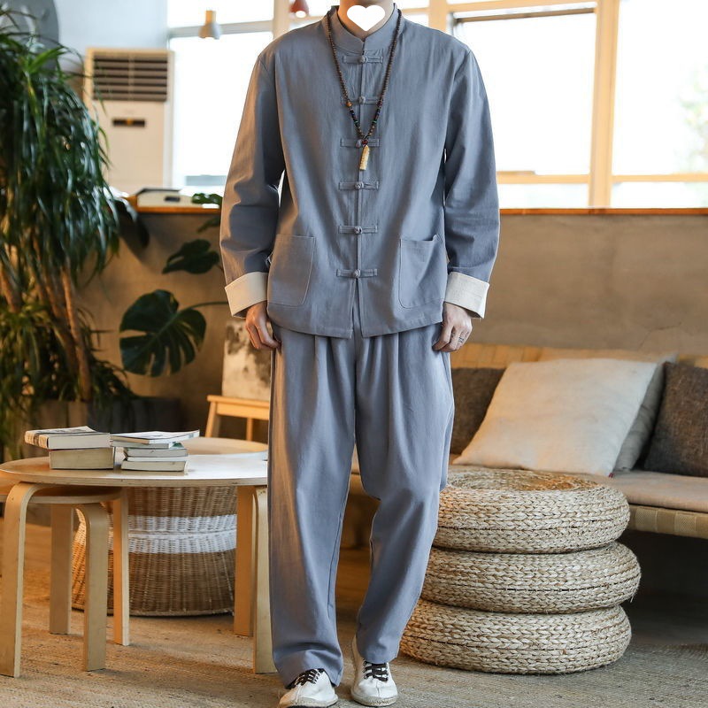 | nameOriginal | Taiji practice clothes three-piece Tang suit men's traditional clothing Taiquan Tang suit clothes buckle thin mid-length direct sales |