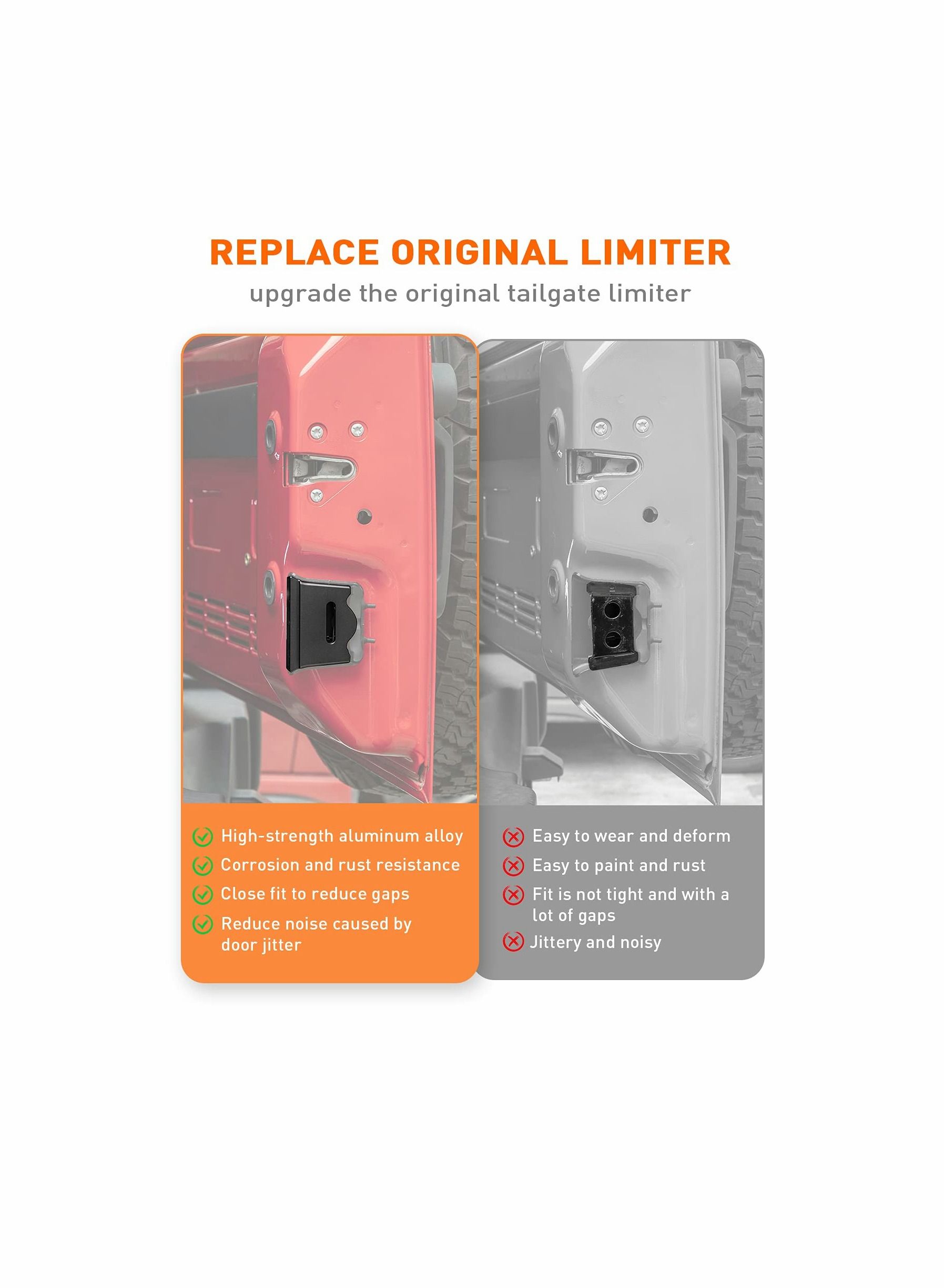 | nameOriginal | TL01 Tailgate Limiter, KASTWAVE Aluminum Alloy Rear Trunk Door Latch, Tail Gate Stopper for 2007-2018 Jeep Wrangler JK JKU 2-Door & 4 Door, Tailgate Replacement Accessories, Black (1 PCs) |