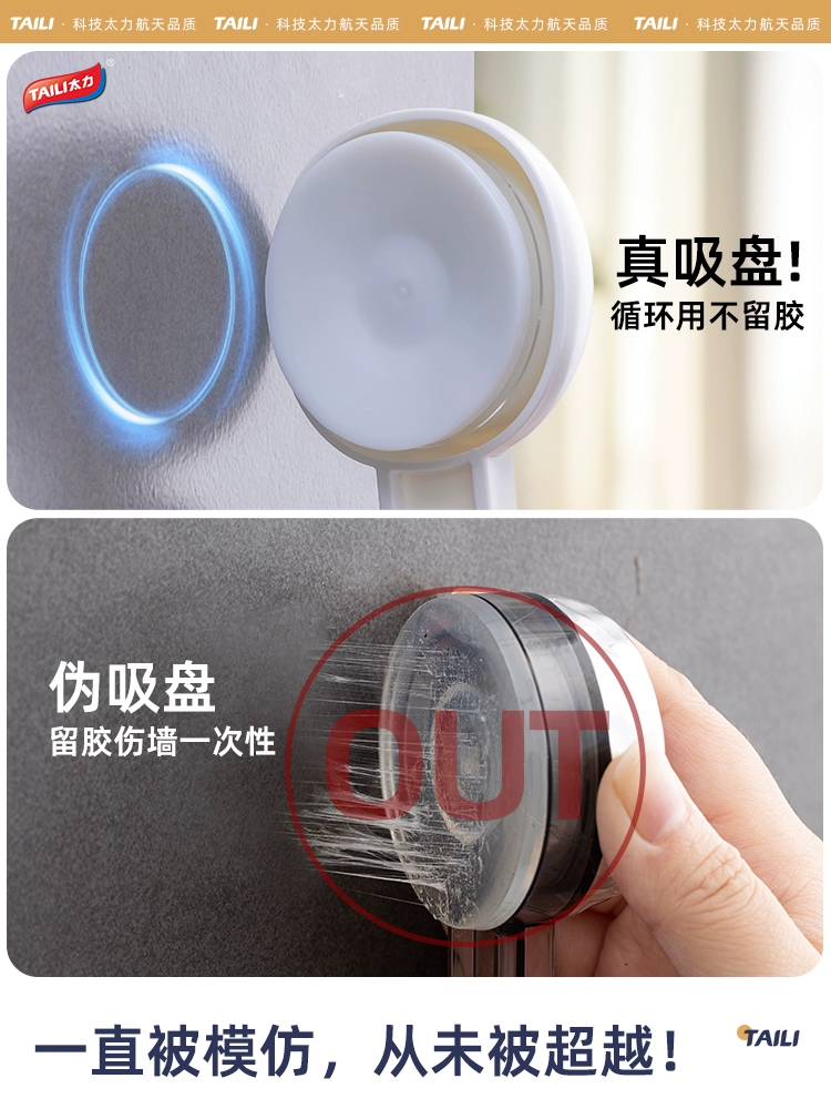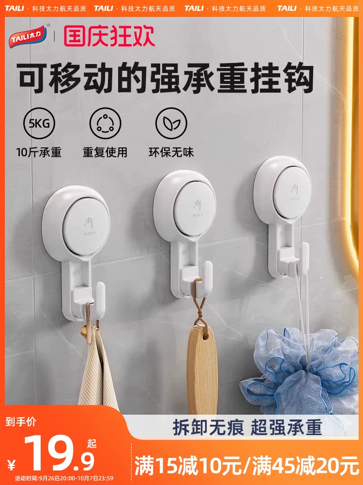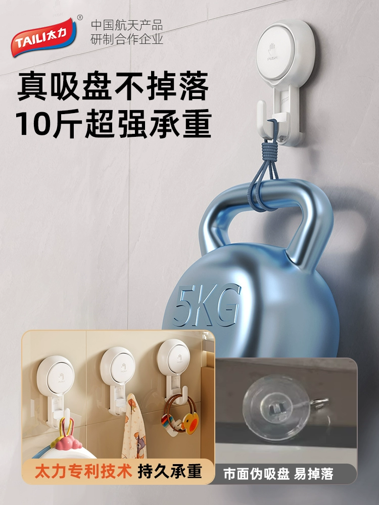 Taili suction cup hook, no punching, traceless vacuum behind bathroom door, strong load-bearing towel adhesive for bathroom and kitchen