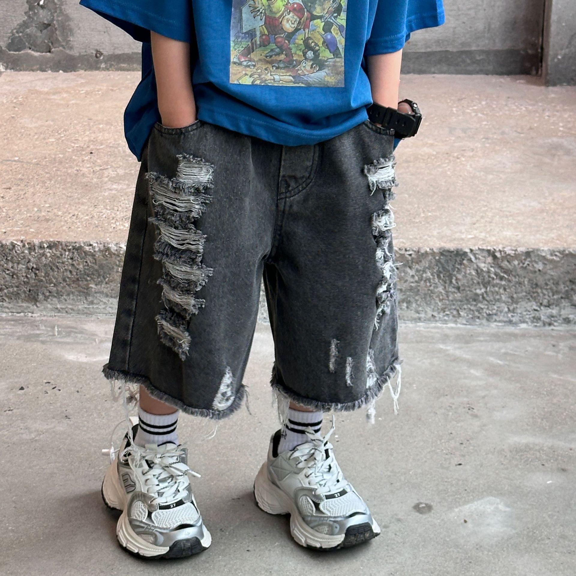 | nameOriginal | Tairu 2024 Summer New Arrival Korean Style Boys' Fashion Trendy Cool Ripped Stylish All-Match Jeans Trendy Shorts for Children |