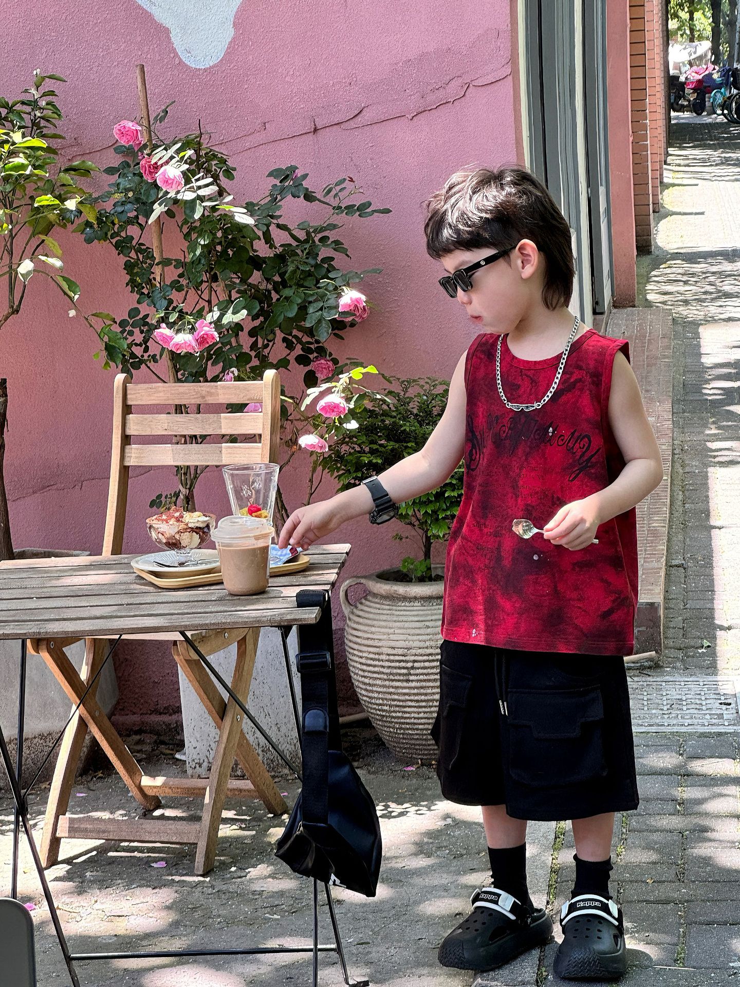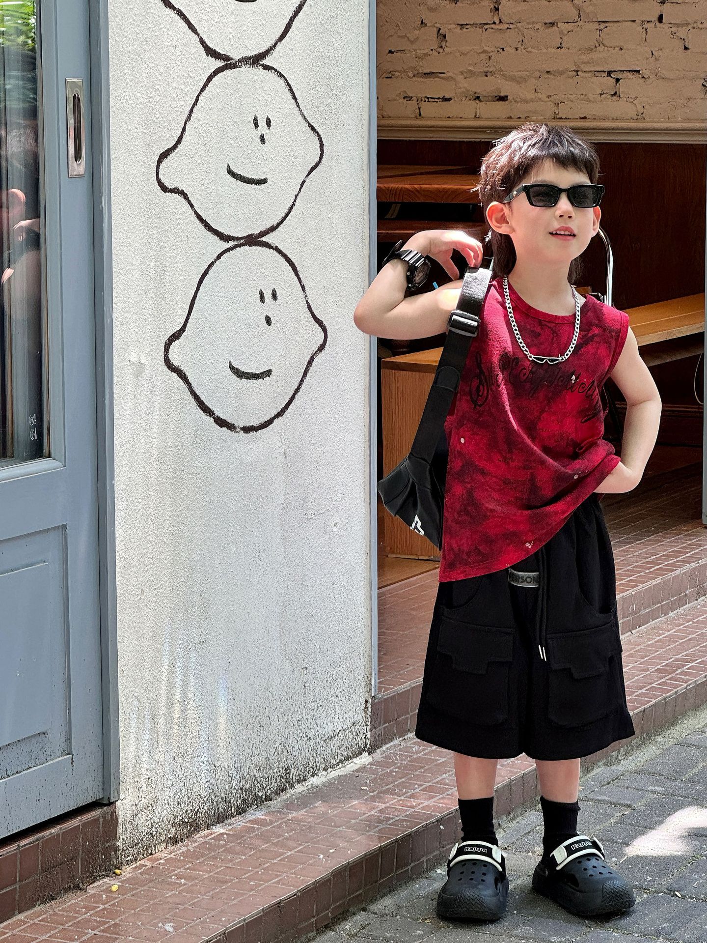 | nameOriginal | Tairu 2024 Summer New Arrival Korean Style Boys' Fashionable All-Match Stylish Tie-Dye Splash Vest Children's T-Shirt Top Trendy |