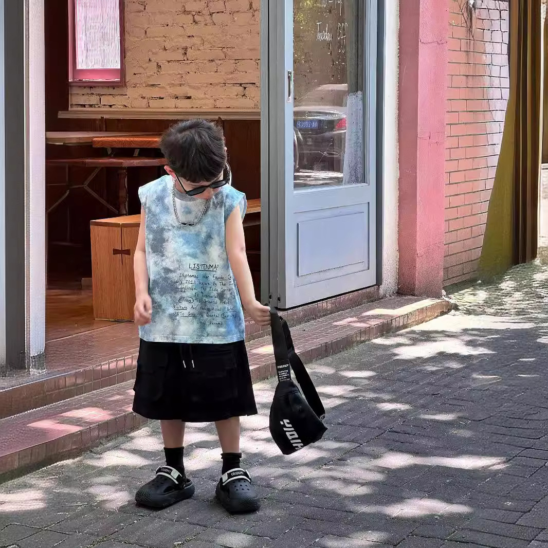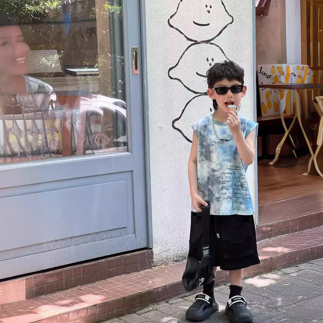 Tairu 2024 Summer New Arrival Korean Style Boys' Fashionable All-Match Tie-Dye Stylish Vest Children's T-Shirt Top Trendy