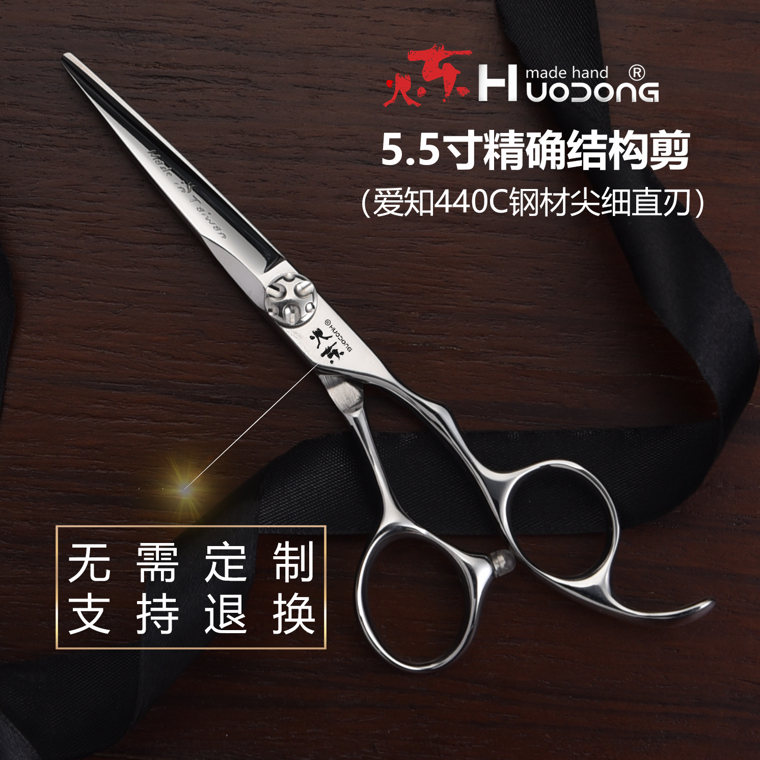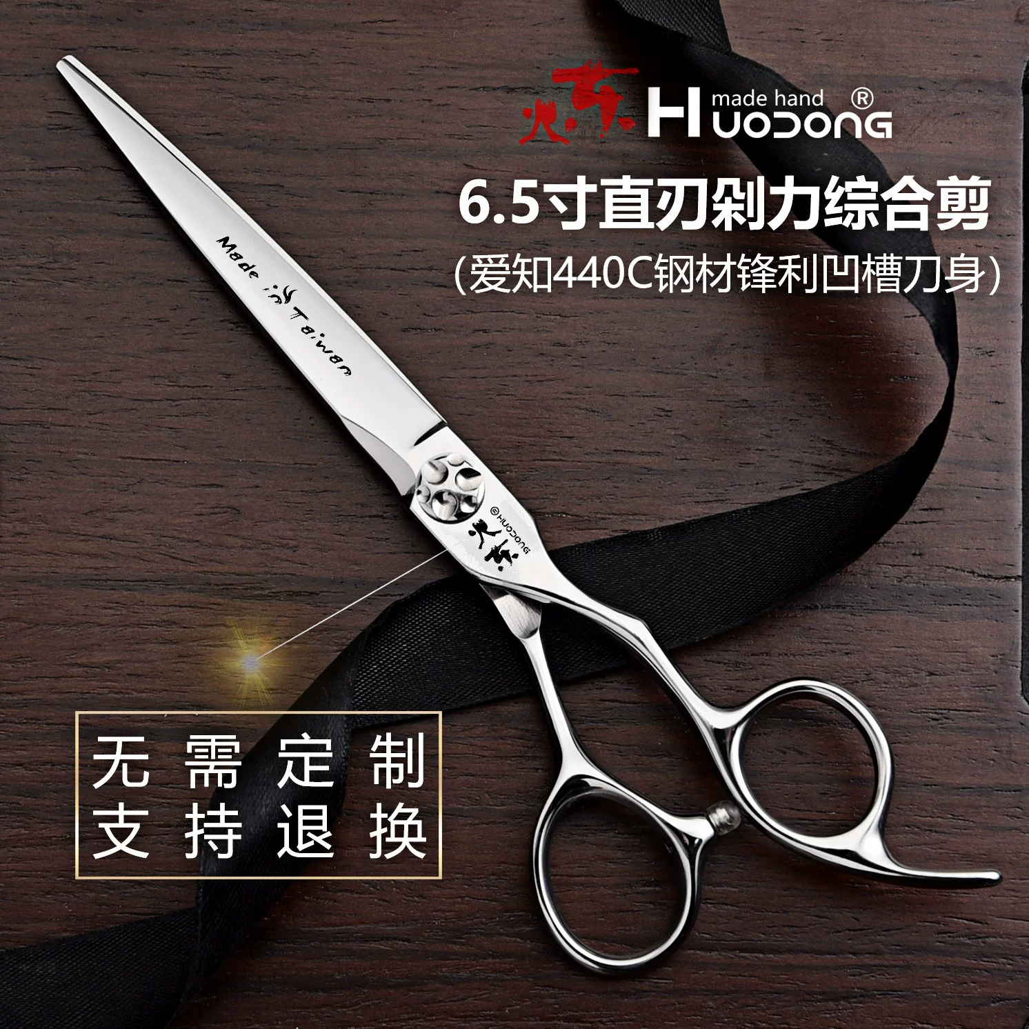 Taiwan Huodong professional hairdressing scissors 5.5-inch structure, 7-inch long scissors, sharp and non-slip, 6-inch comprehensive flat scissors