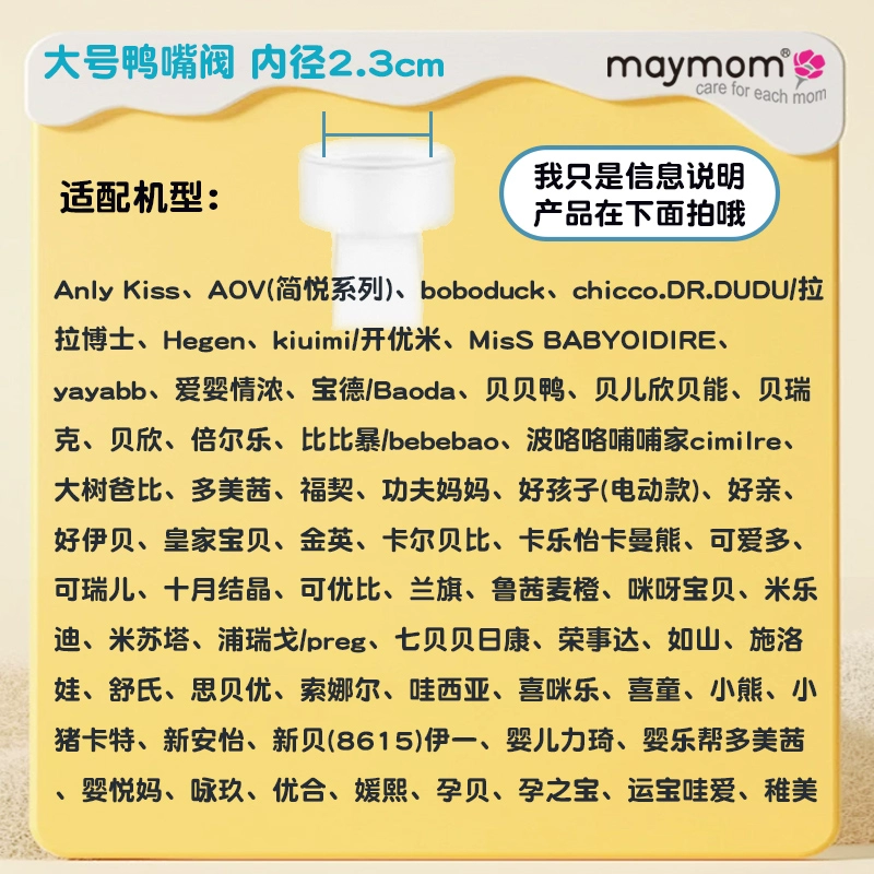 | nameOriginal | Taiwan Maymom Duckbill Valve Berwick Himile New Beibei Ameda Lansino Adriando |