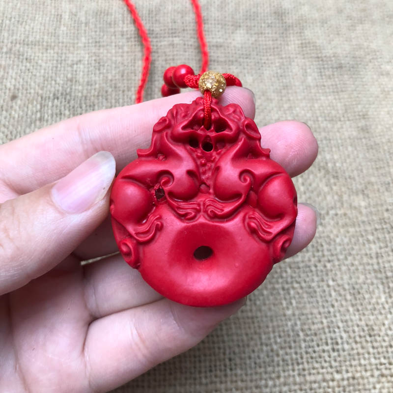 | nameOriginal | Taiwan original color cinnabar peace buckle pendant transfer imperial red double Pixiu peace buckle jade buckle necklace certificate |