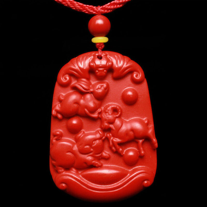 Taiwan's original color cinnabar zodiac pig, rabbit and sheep three-in-one spirit bead pendant is a rabbit mascot pendant and comes with a certificate