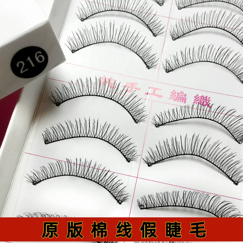 Taiwan's pure handmade 216 false eyelashes for women, natural short style, nude makeup, realistic cotton thread black stems, photo studio 217 eyelashes without makeup