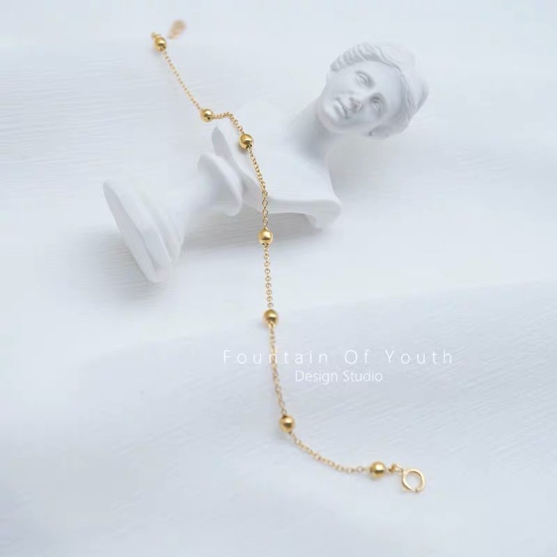 # Take a bath without picking 925 sterling silver plating 14k gold gypsophila transfer small gold bead anklet minimalist Joker gold bean feet
