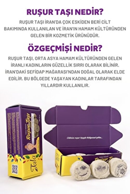 Rashur Stone Rashur stone is known as the beauty secret of Iranian women who come from traditional Central Asian bath culture. It is obtained naturally from the Sefidap Cave in Iran. Rashur Stone cleanses your skin with its natural structure, while exfoliating effect helps to clear the skin from dead skin. Areas of Effects Gently removes dead skin and cells on the skin without irritating the skin. It is natural peeling. It whitens the skin and removes tone differences. Effective against spots from birth, old age, sun, acne. Removes blackheads and sebaceous glands. Repairs heel cracks. Prevents the formation of skin wrinkles. Prevents sweating. Illuminates darkening areas such as armpits, elbows. It tightens, gives a fluffy, velvety effect. Usage Type Suitable for use for face and body. Break a piece of Rashur stone, crumble the piece you have broken on your palm and apply it with gentle and circular movements and exfoliating on wet and moist skin. You can apply it with the help of scrub on the body use. Soak on the skin for a minute, then rinse with plenty of water. To the sparkle and velvet texture it leaves, you will call it a miracle.