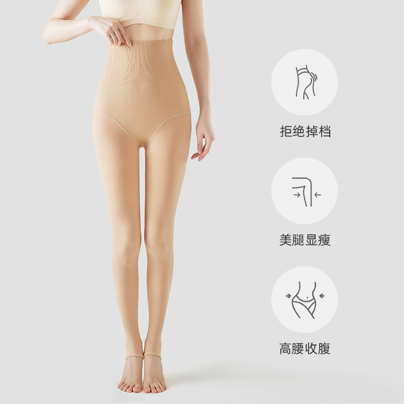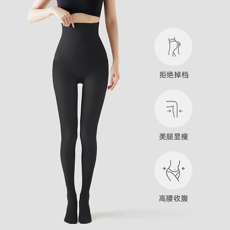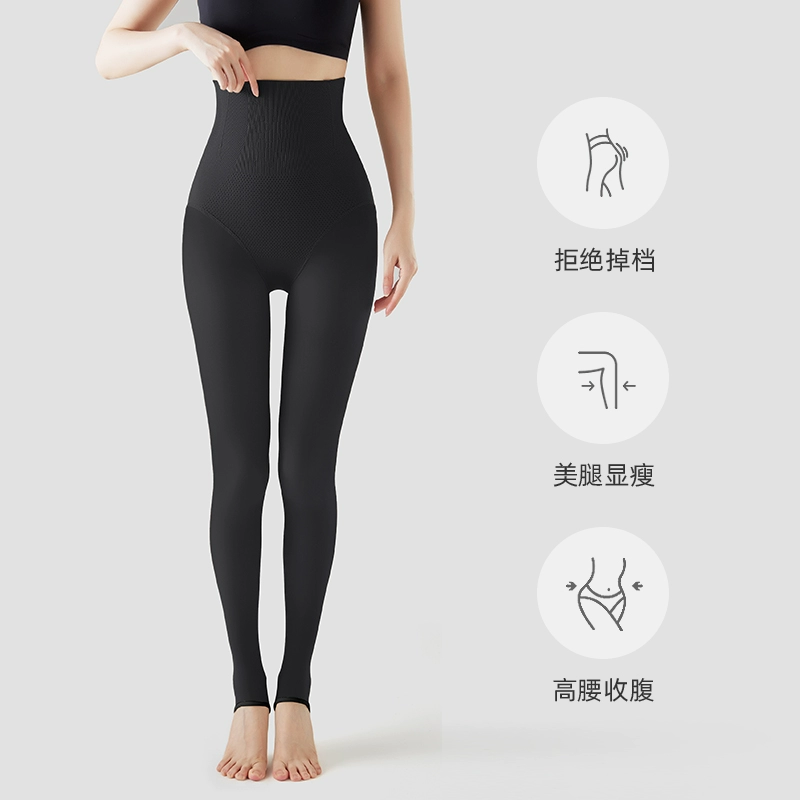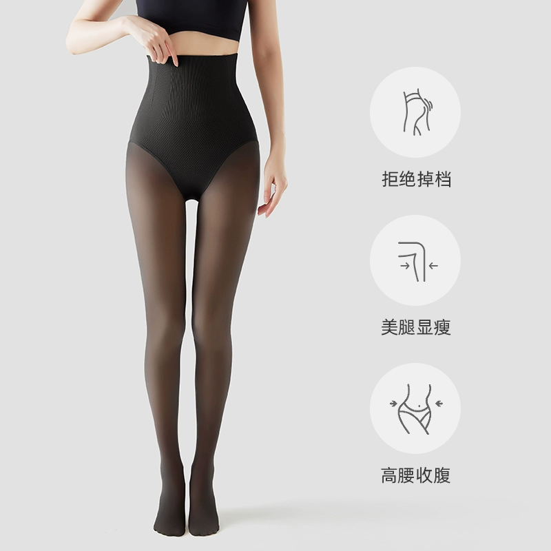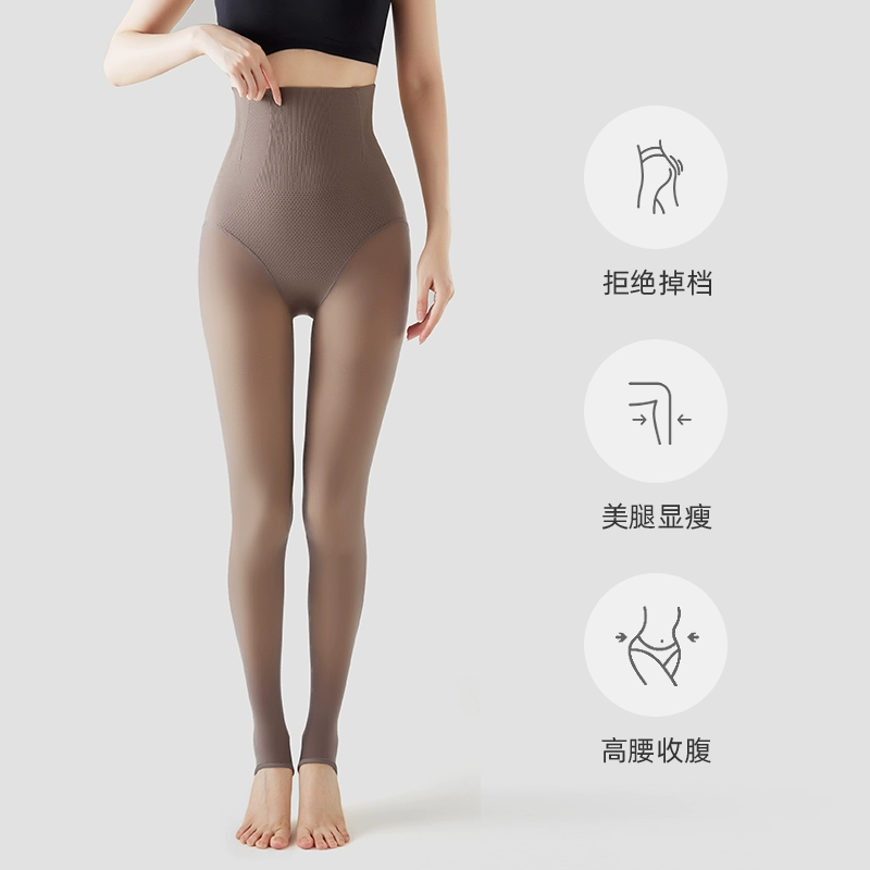 Tall stewardess gray all-in-one translucent pants for women in autumn and winter plus velvet fake translucent leggings to lengthen black silken legs artifact