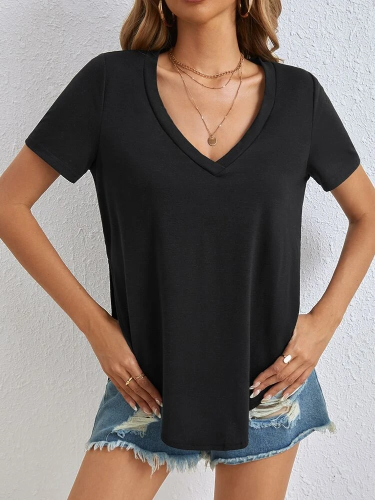 | nameOriginal | SHEIN Tall Solid Split Side V Neck Tee  |